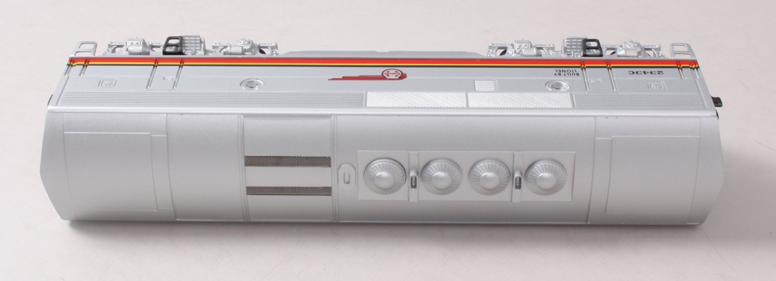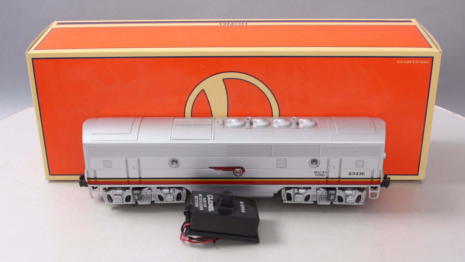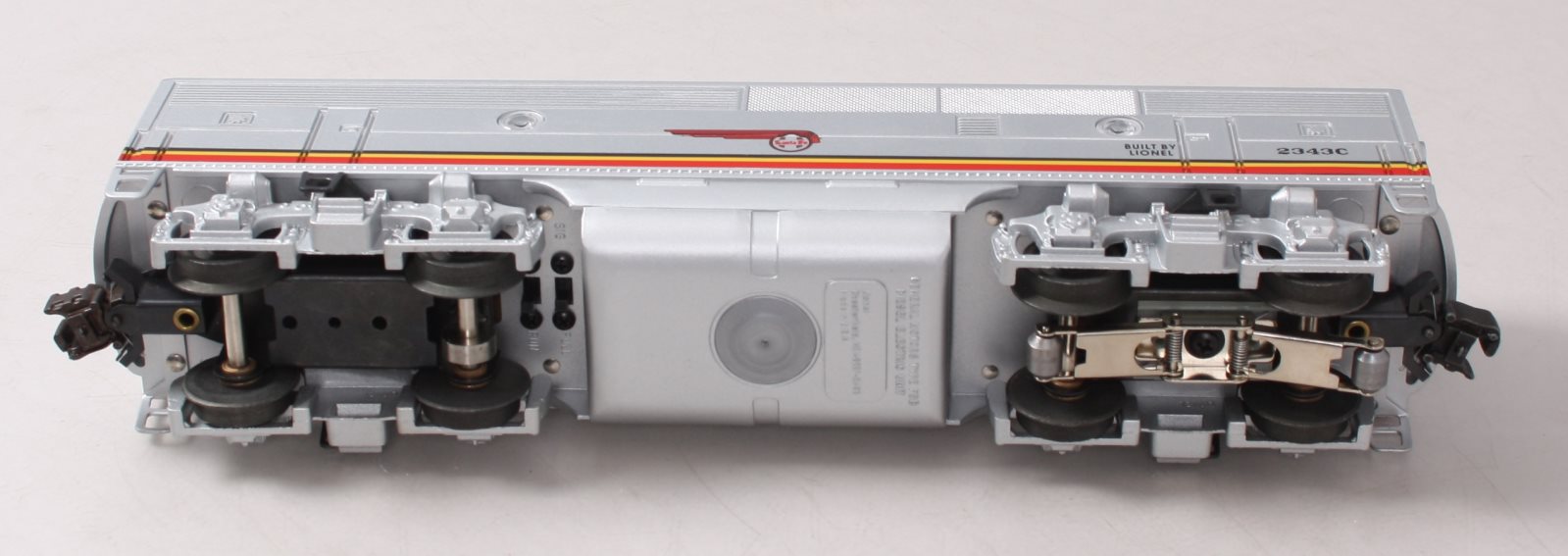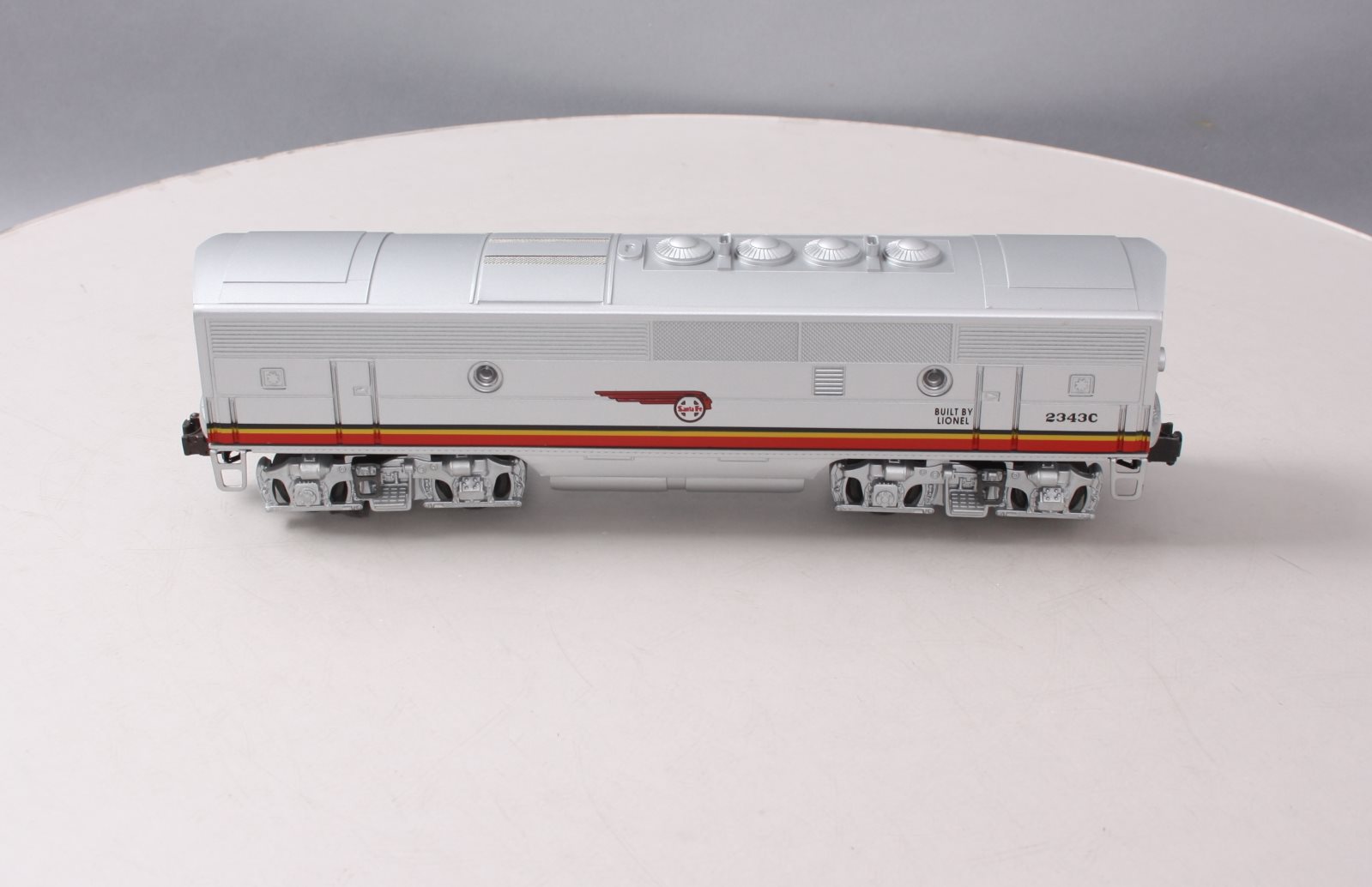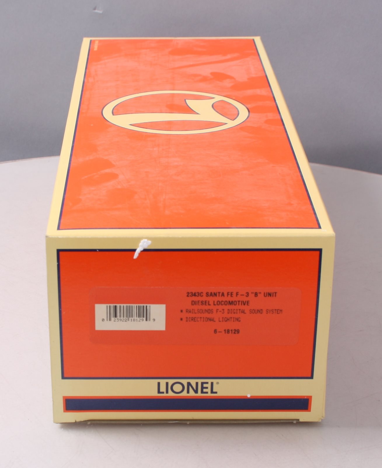 This is a Lionel 6-18129 O Gauge Santa Fe F3 Non-Powered B-Unit Diesel Locomotive #2343C w/Railsounds from 1996. Features include plastic body construction, knuckle couplers, metal wheels, and railsounds F3 digital sound system.