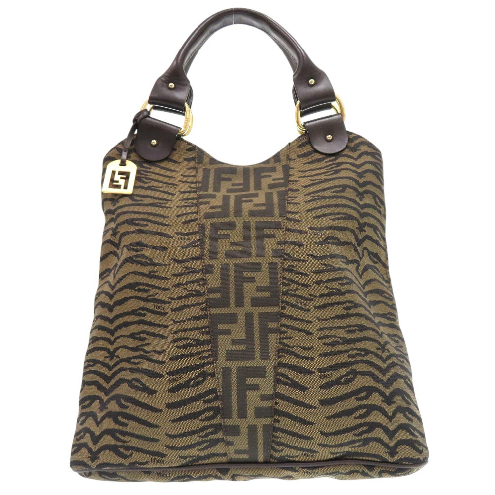 AUTHENTIC FENDI Tiger pattern ZuccaHand Bag Brown Canvas