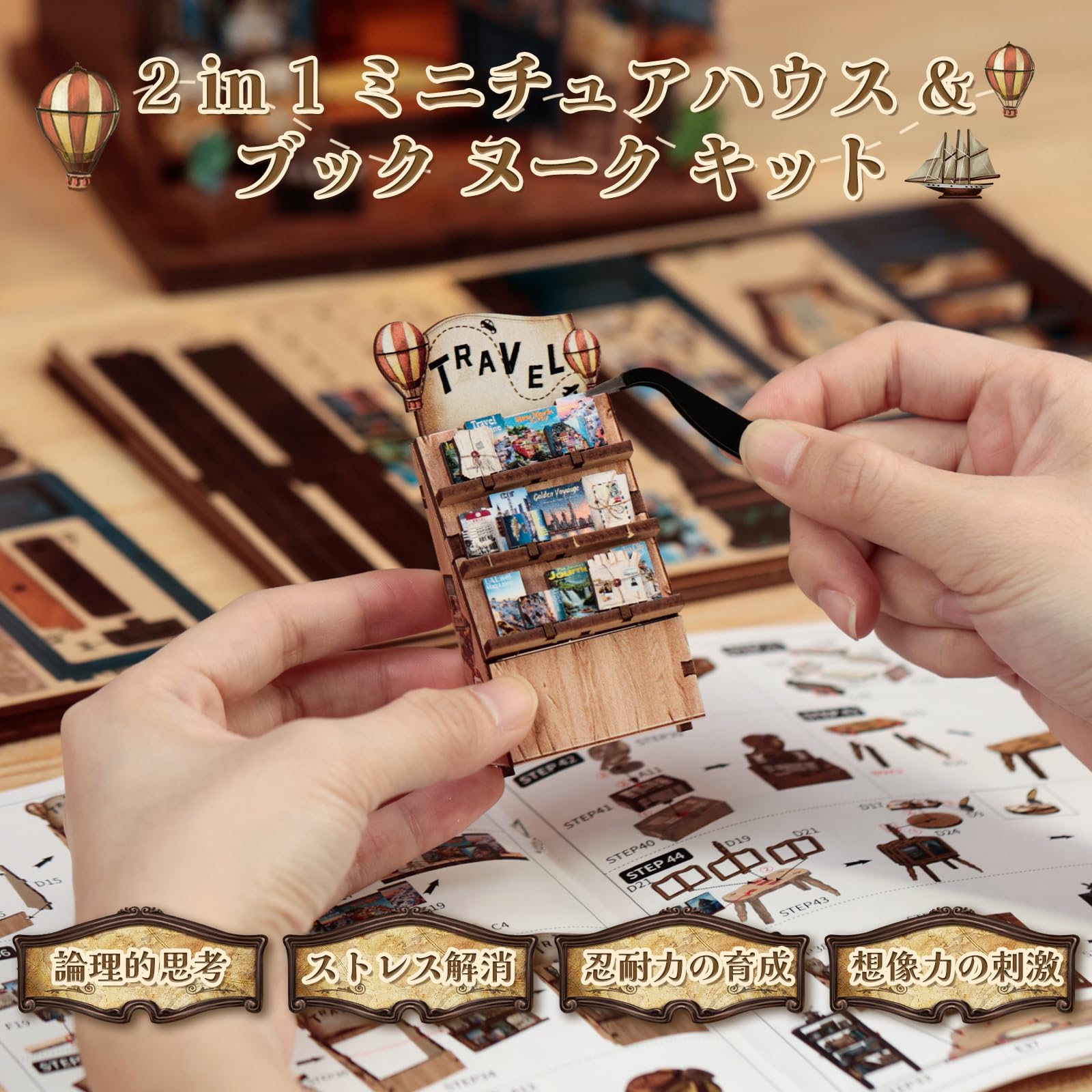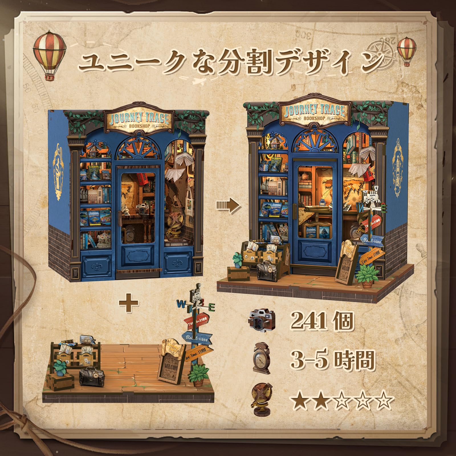[Book Nook Kit - Travel Footprint Bookstore] This Book Nook Kit is a travel-themed bookstore, immersed in an atmosphere of exploration and adventure. The dollhouse kit features travel books and magazines, as well as mementos from around the world. From refrigerator magnets to handmade crafts, the items tell stories of various cultures and journeys. This miniature kit allows you to experience the charm and inspiration of travel through words and objects.