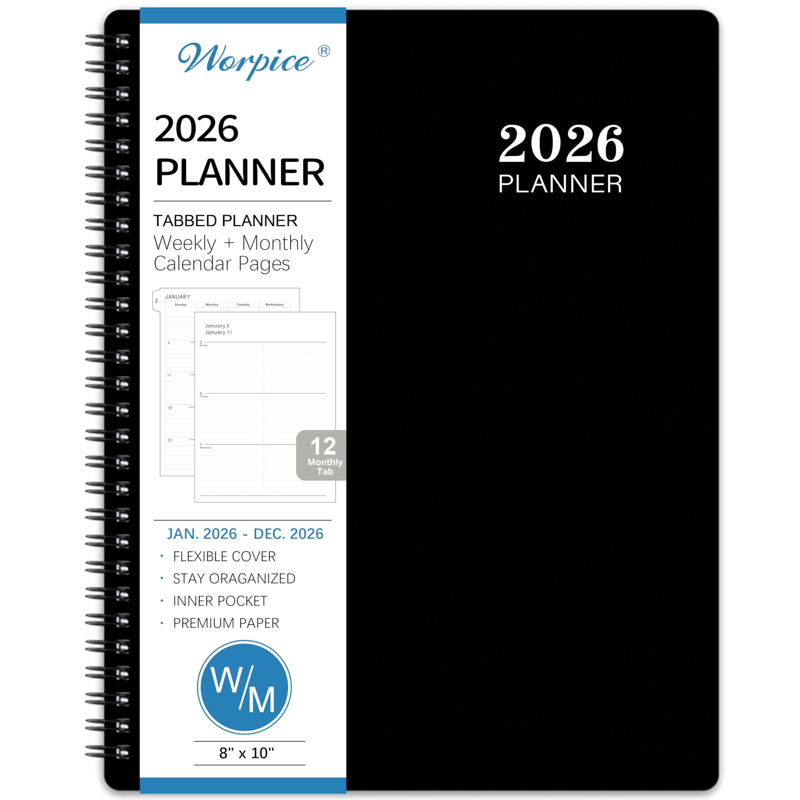 2026 Planner - 8” × 10”, Planner Weekly and Monthly 2026, from JAN to DEC 2026, Premium Paper, Twin-wire Binding, Check Box, Coated Monthly Tabs, for Productive Life