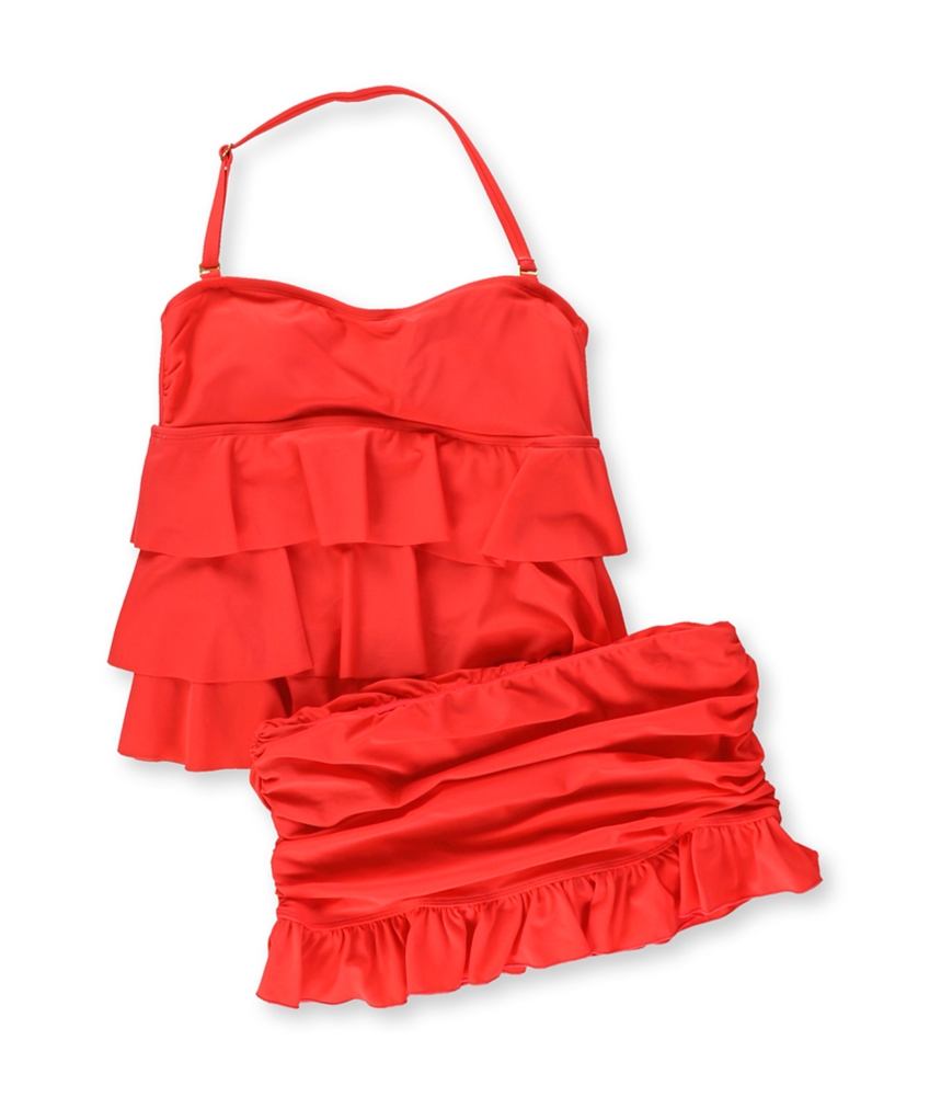 Picture yourself embraced by the sun, sand, and waves, donning a bandeau collar style bikini that radiates with the golden hues of summer. Let your spirit dive into the embrace of the sea, adorned in a tiered ruffle tankini swim top paired with a matching ruffled skirted bikini swim bottom. Feel the touch of luxury with adjustable straps and padded features that offer unparalleled comfort and support, adding a zest of fun to your swim escapades. Dive into a world where every swim is a flirtatious dance, a sensual waltz between you and the whispering waves. Let this opaque, medium-weight gem be your secret to basking in the vibrant hues of spring and summer, your passport to a magical realm where every moment is a splash of joy and a whirl of fun!