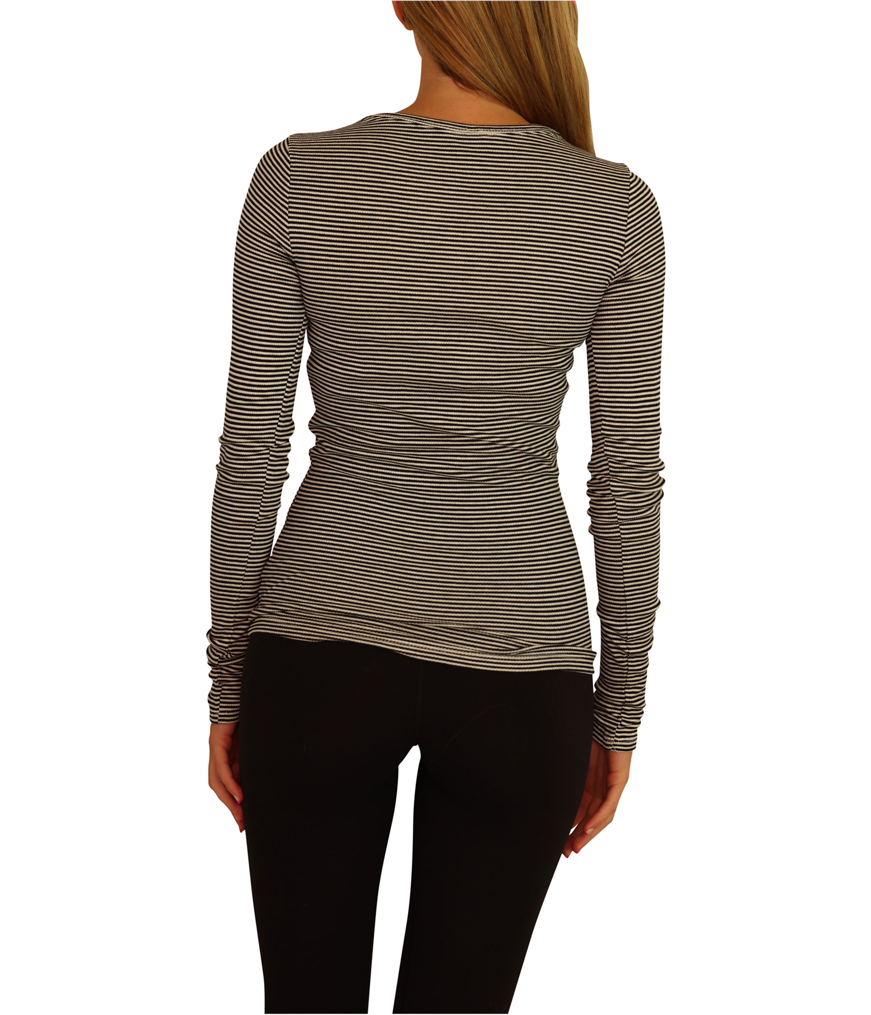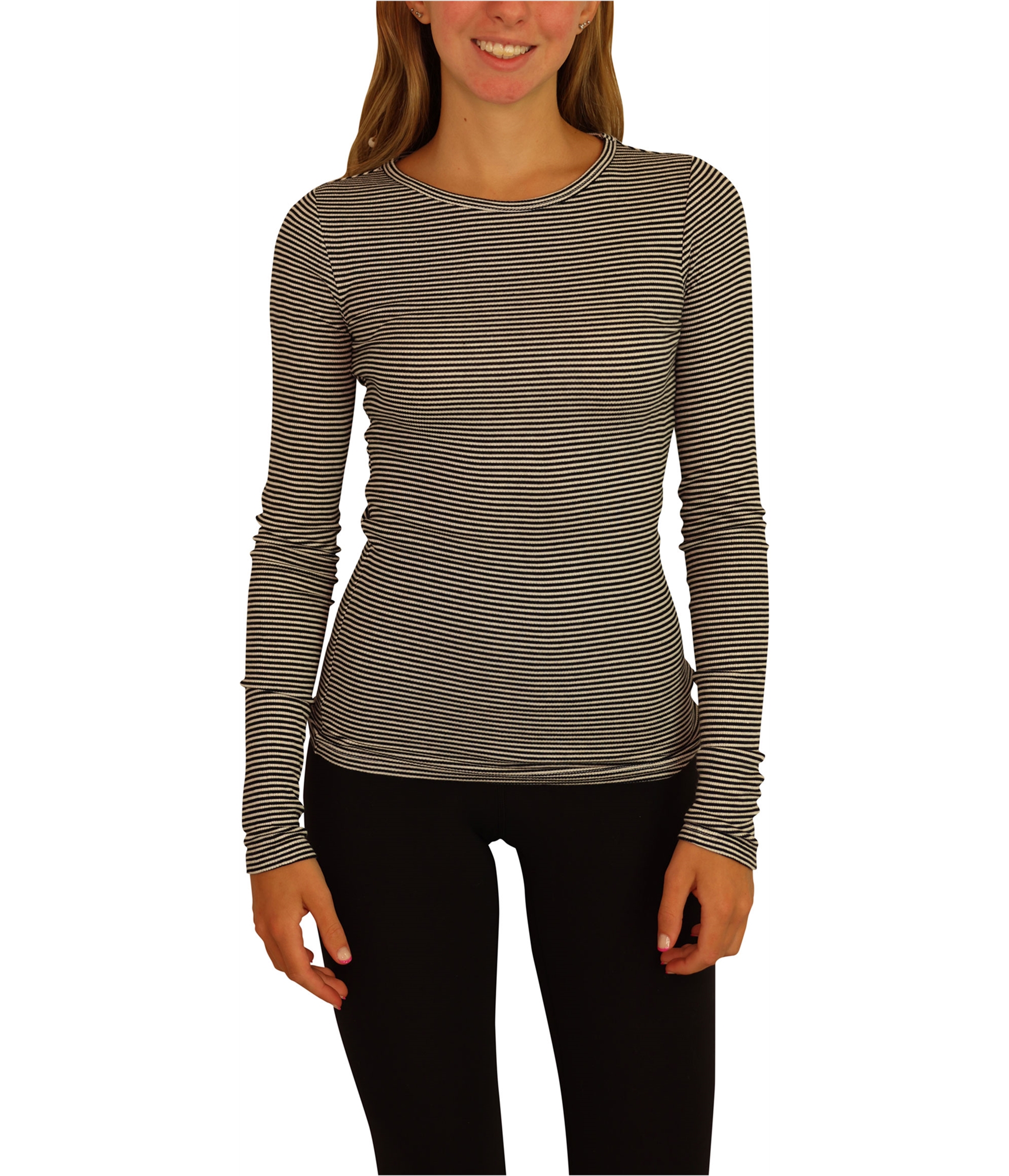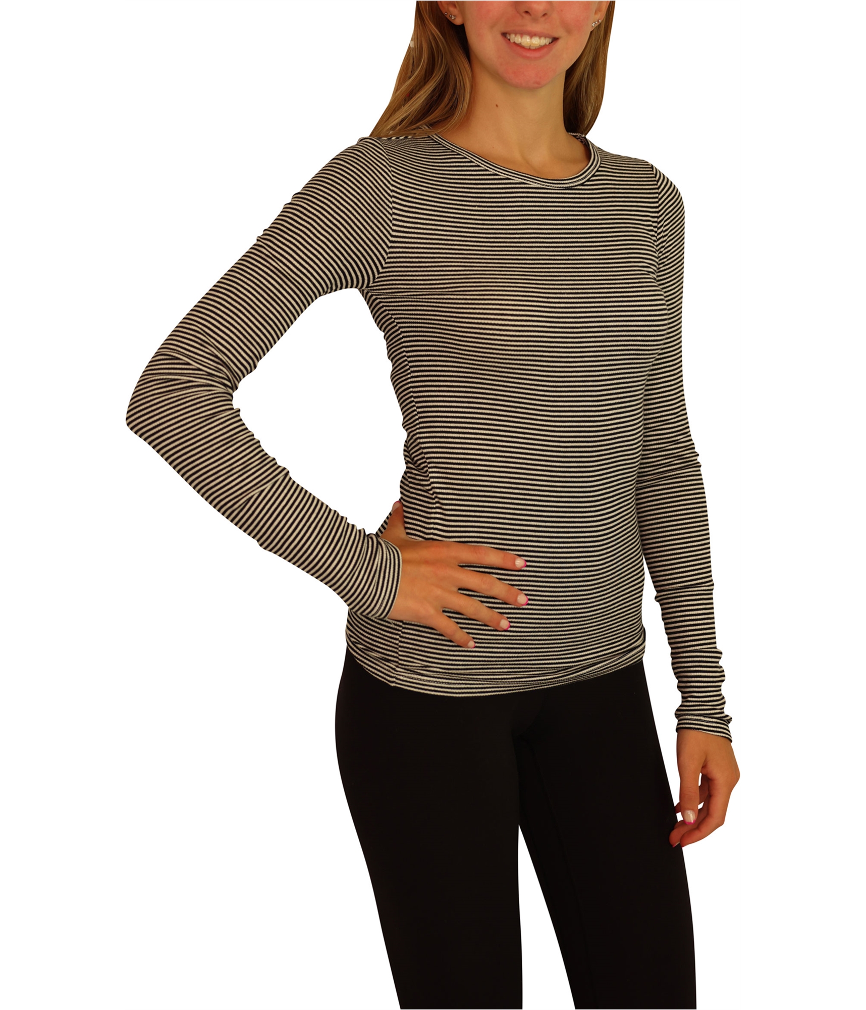 Product Details Gender: Womens Fit: Classic Fit Material: 97% Rayon, 3% Spandex Sleeve Length: Long Sleeve Collar Style: Crew Neck Pattern: Stripes-Horizontal Density: Medium Weight Season: All Seasons Occasion: Casual Theme: Modern Country of Manufacture: Cambodia