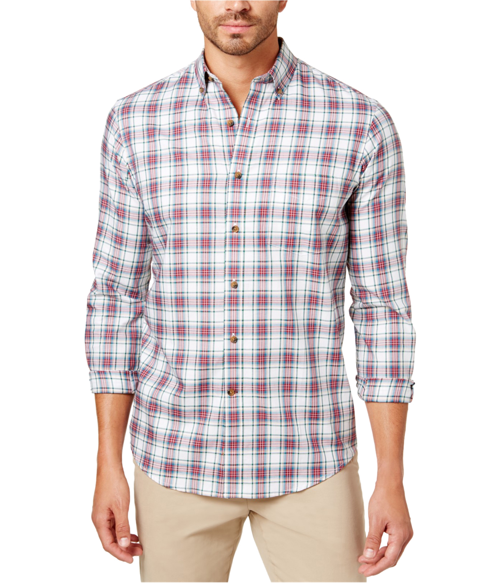 Club Room Mens Plaid Button Up Shirt, brightwhite, S Neck