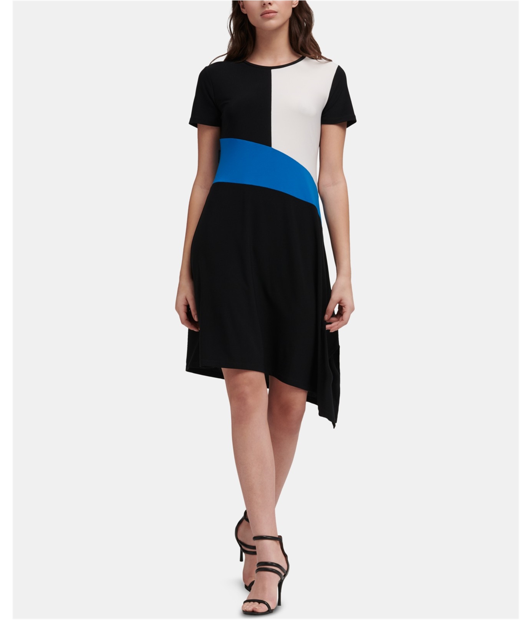 DKNY Womens Colorblock Asymmetrical Dress, charcoal, S