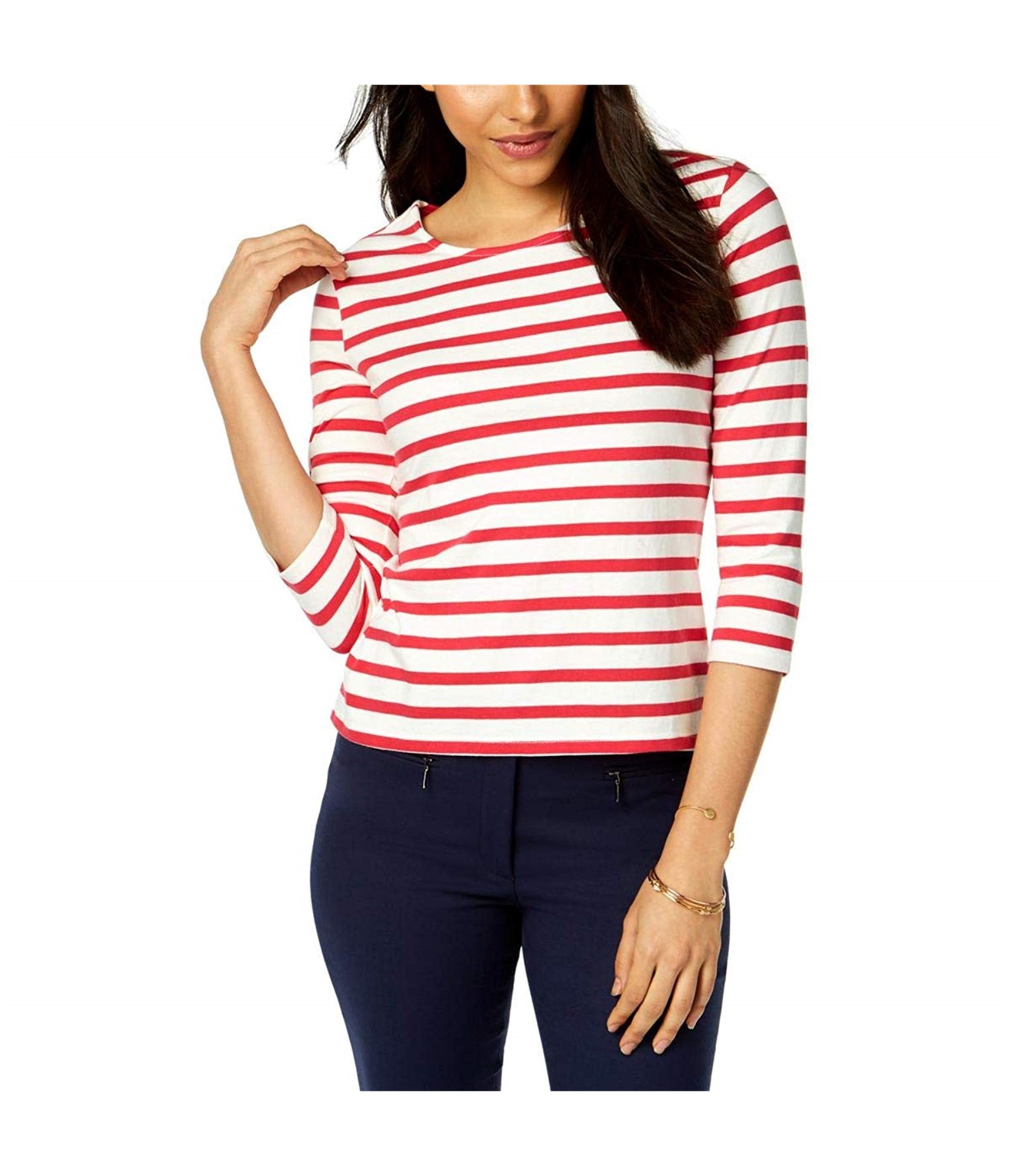 maison Jules Womens Striped Bow Basic T-Shirt, pink, XS