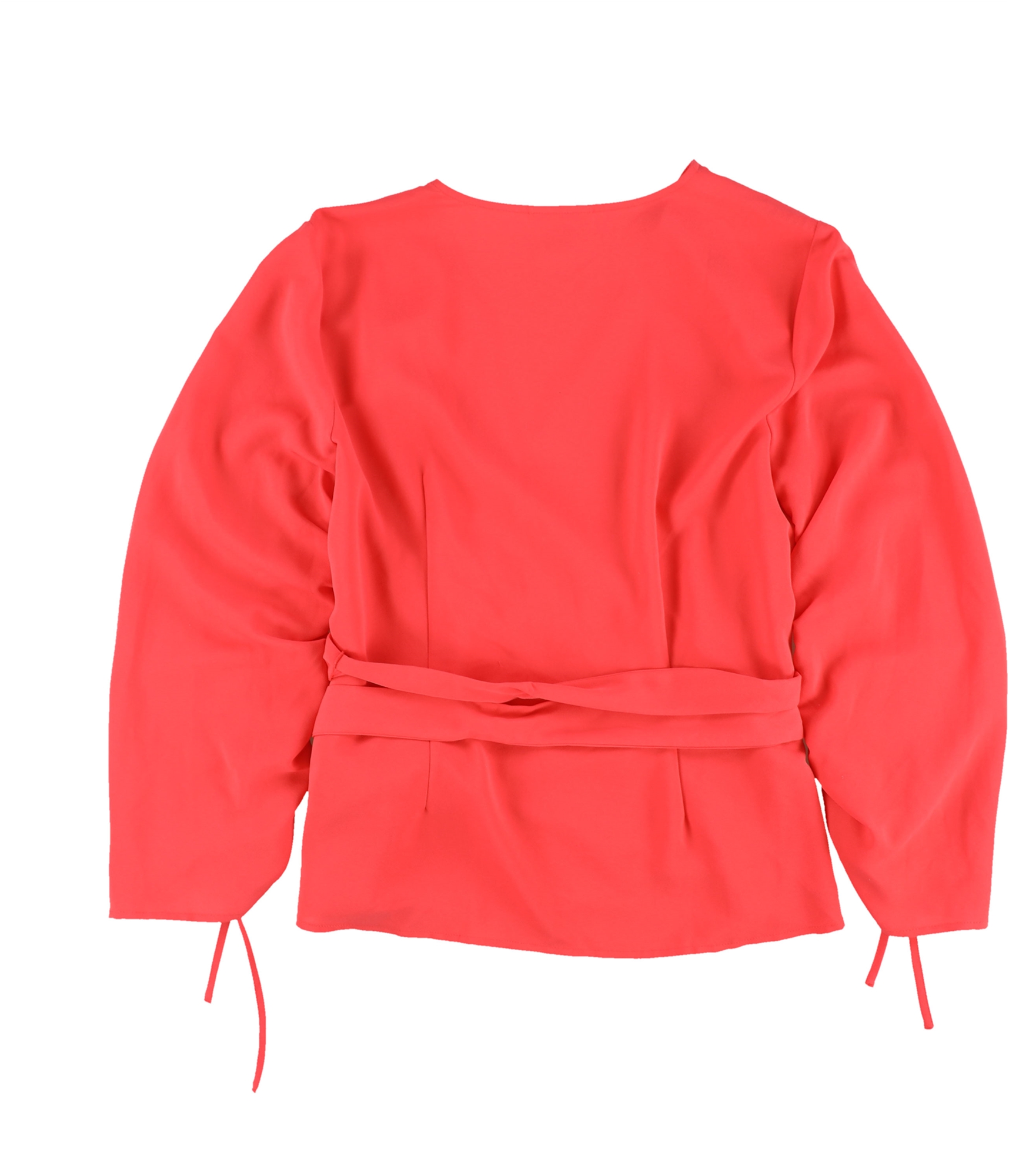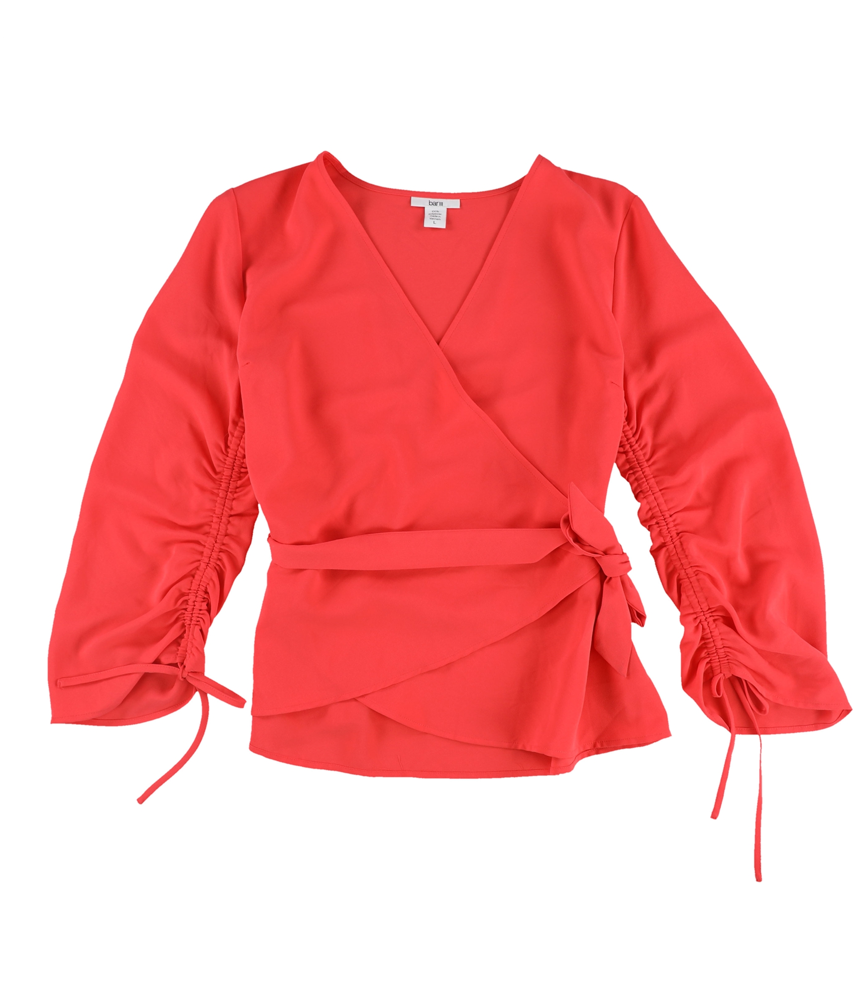 bar III Womens Ruched Wrap Knit Blouse, hibiscusbloom, L
