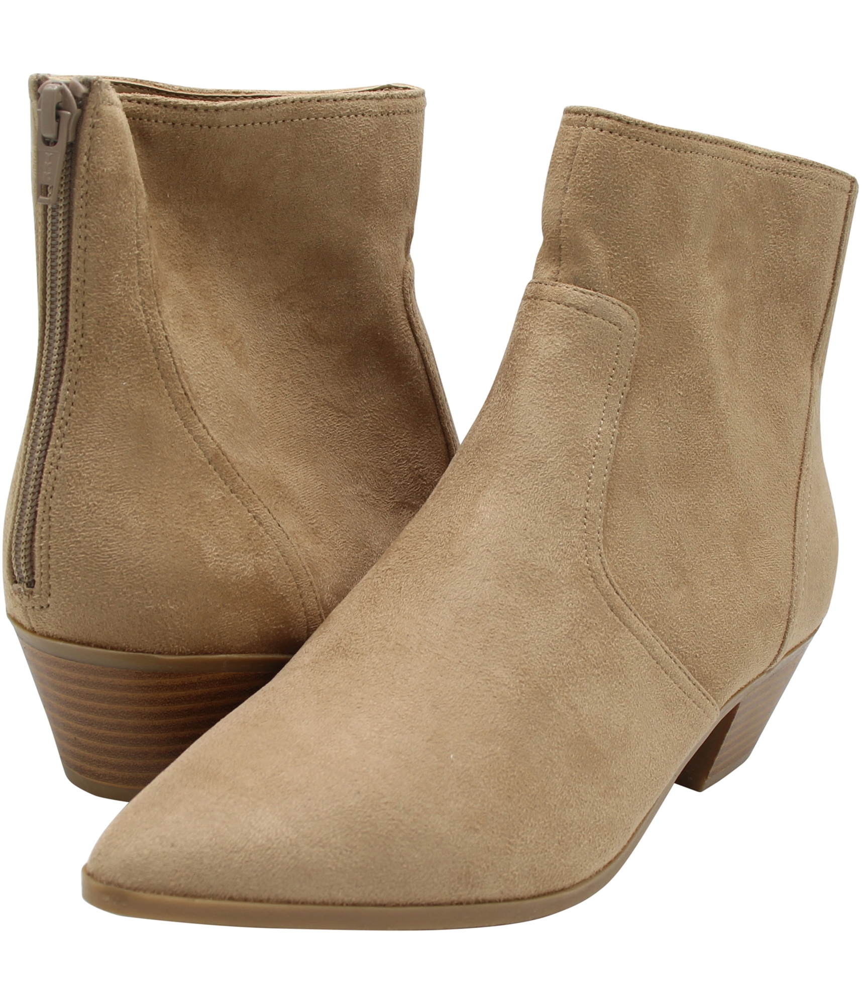 ELEVATE YOUR STYLE: These Banana Republic bootie boots feature a chic pointed-toe silhouette and a faux suede finish for a touch of sophisticated flair.