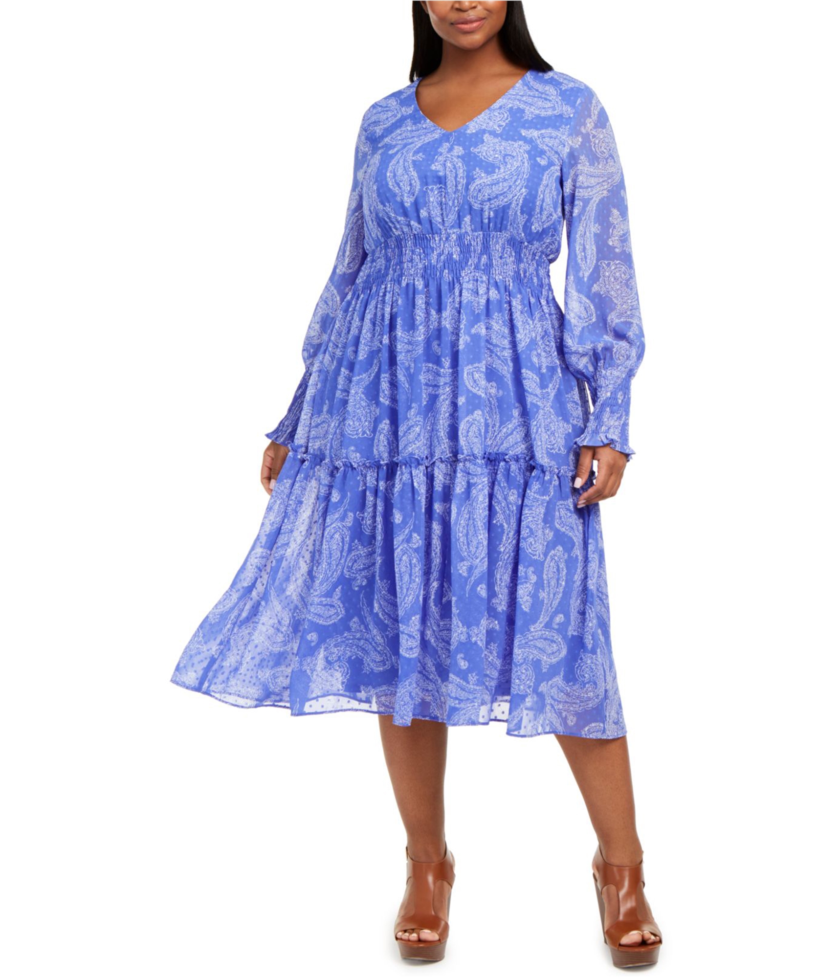 Taylor Womens Forget Me Not Midi Dress, blue, Plus Size, 14W