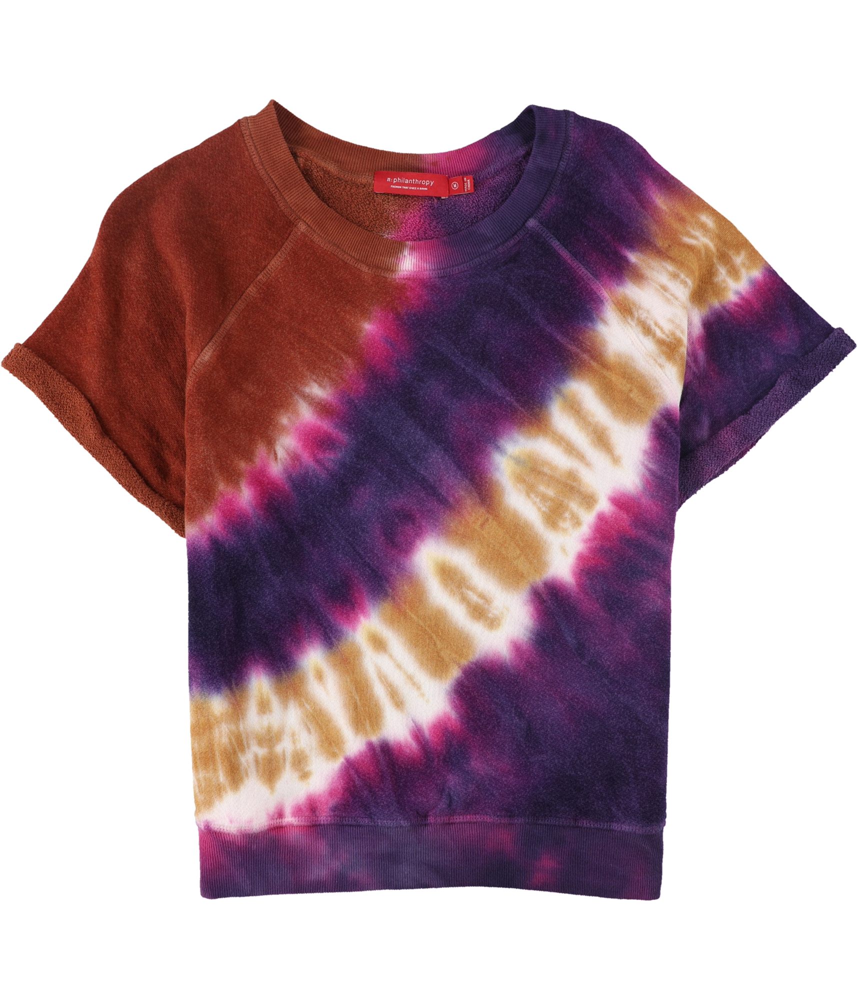 The sweatshirt features a trendy tie-dye pattern and the brand logo. With its crew neck design and short sleeves, this sweatshirt is a fashionable choice for all seasons. Made in China, this stylish piece offers a modern touch to any outfit.