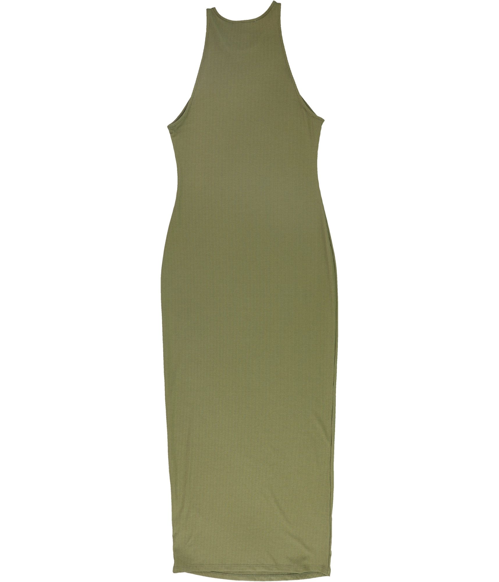 Embrace effortless chic with this ribbed bodycon dress. The halter neckline and sleeveless design exude modern sophistication, while the midi length offers a versatile silhouette perfect for any occasion. Crafted from a stretch knit, this dress moves with you, highlighting your curves with a flattering fit. Imagine yourself turning heads at brunch or enjoying a night out in this essential piece that seamlessly blends comfort and style.