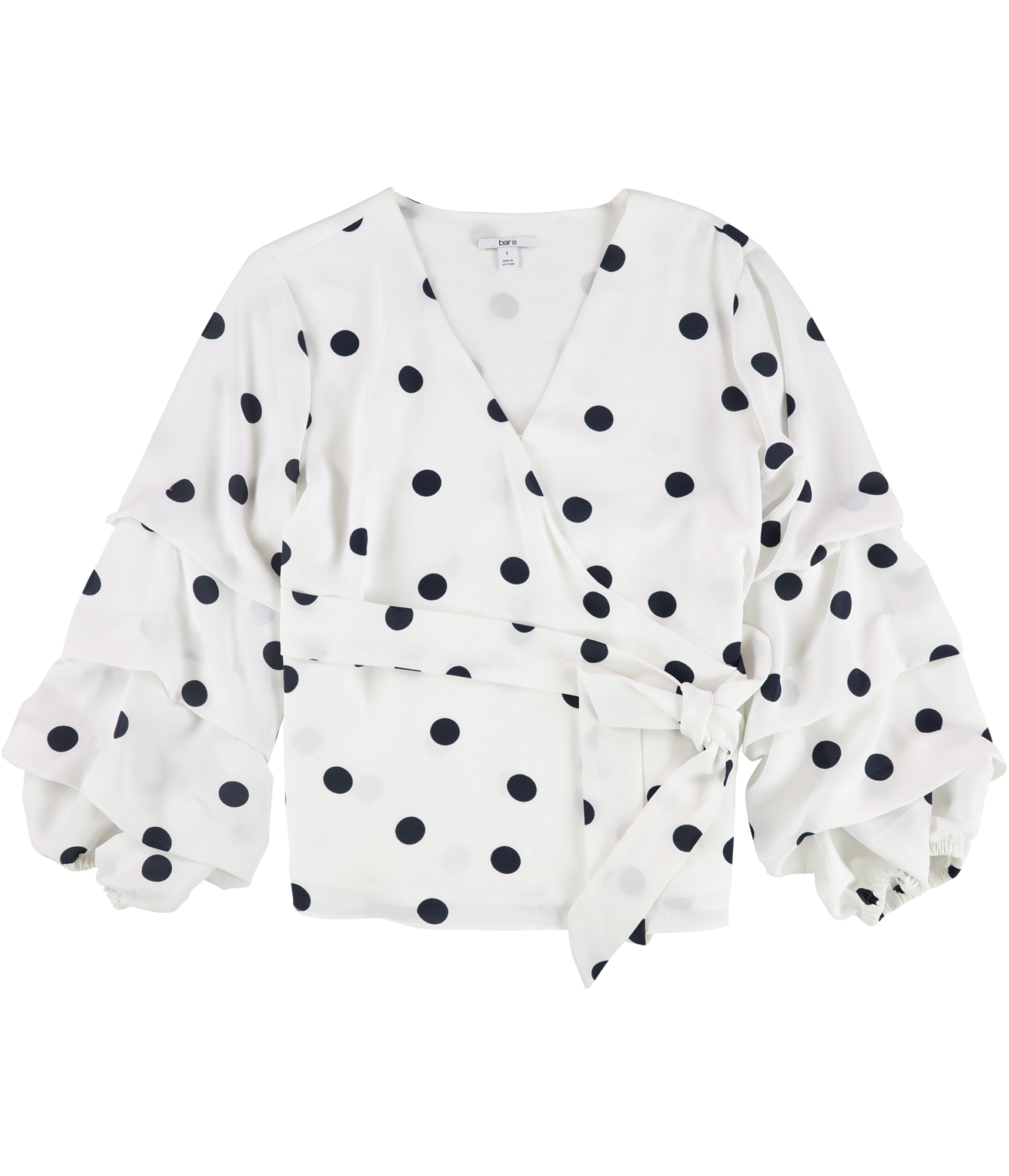 bar III Womens Polka Dot Wrap Blouse, floatingdot, L