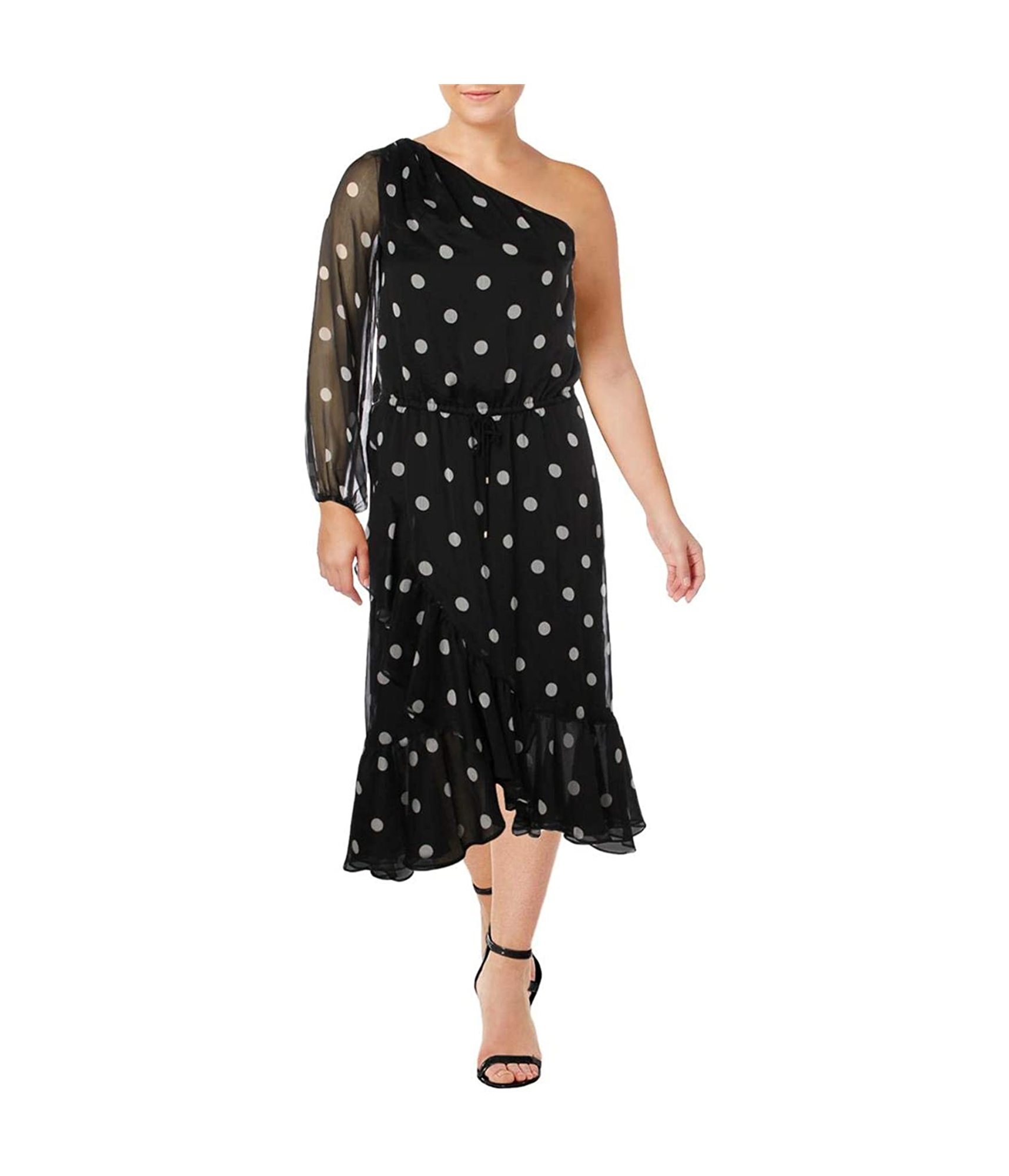 Ralph Lauren Womens Polka Dot One Shoulder Dress, black, 12