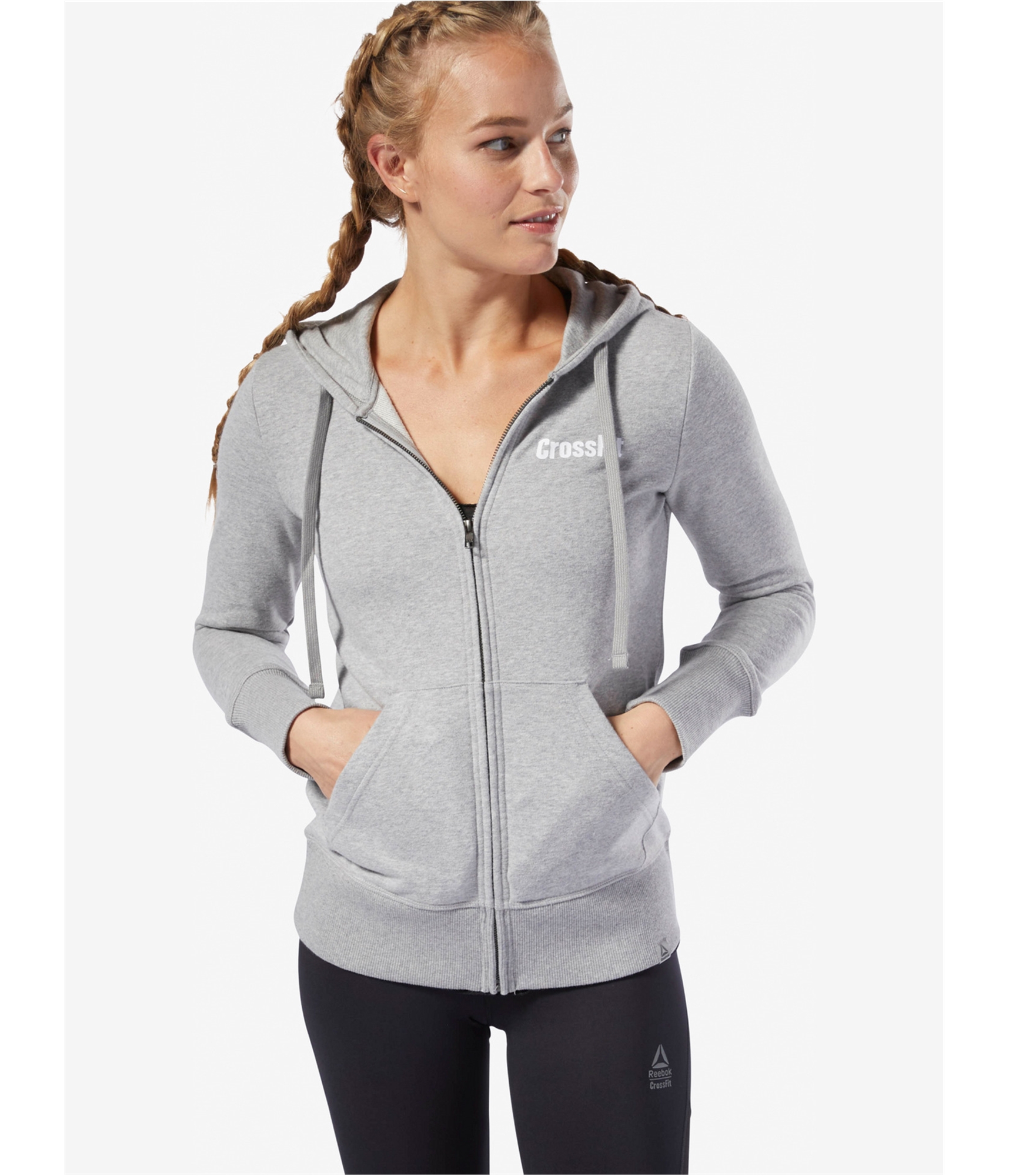 Embrace your inner athlete with this Reebok CrossFit zip-up sweatshirt. Designed for the modern warrior, this top offers a perfect blend of style and function, keeping you comfortable whether you're hitting the gym or conquering your day. The iconic logo emblazoned on the chest serves as a badge of honor, a subtle nod to your dedication and drive. Picture yourself pulling on this cozy layer after an intense workout, the soft, medium-weight knit providing just the right amount of warmth. The ribbed cuffs and hem ensure a snug fit, while the front pockets are perfect for stashing your essentials or warming your hands. With its timeless design and athletic spirit, this sweatshirt is more than just activewear – it's a statement of your commitment to peak performance and a lifestyle of continuous improvement.