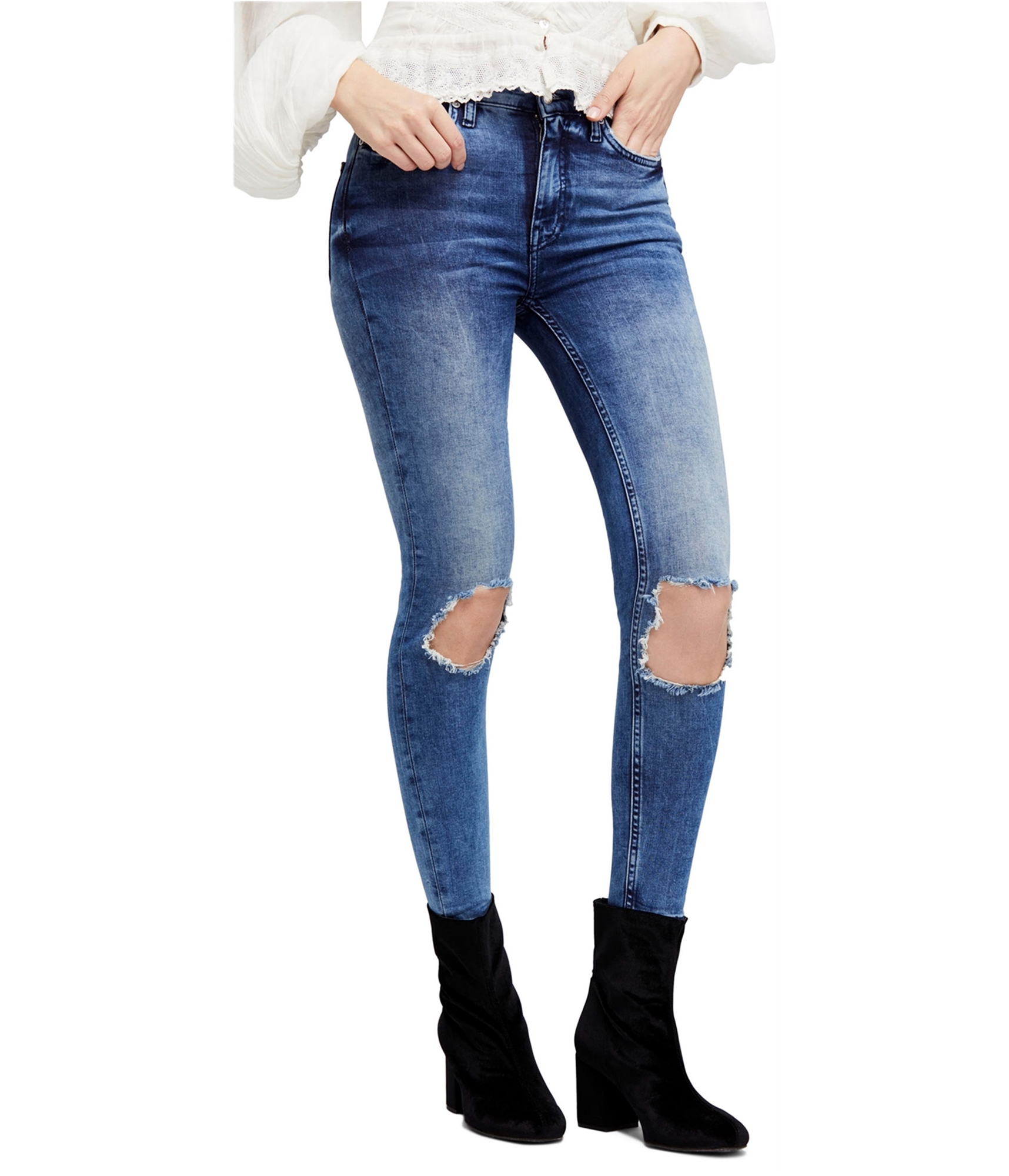 Free People Womens Busted Knee Skinny Fit Jeans, blue, 26