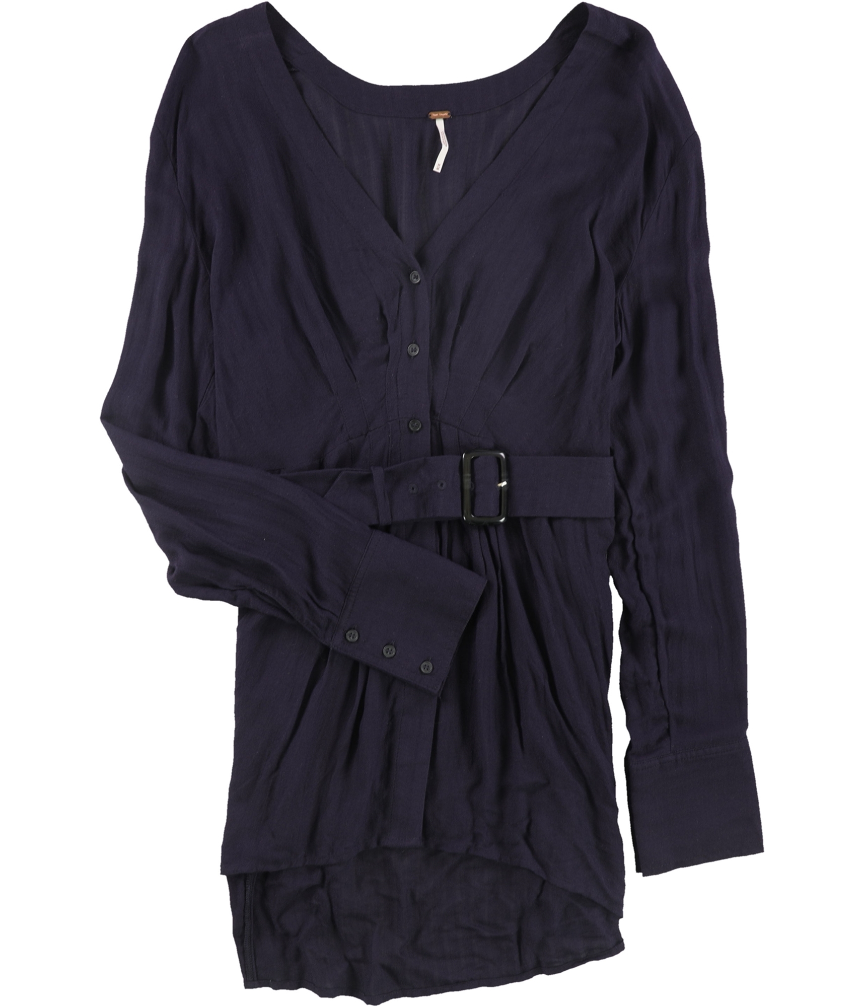Free People Womens Solid Belted Button Down Blouse, purples, XS