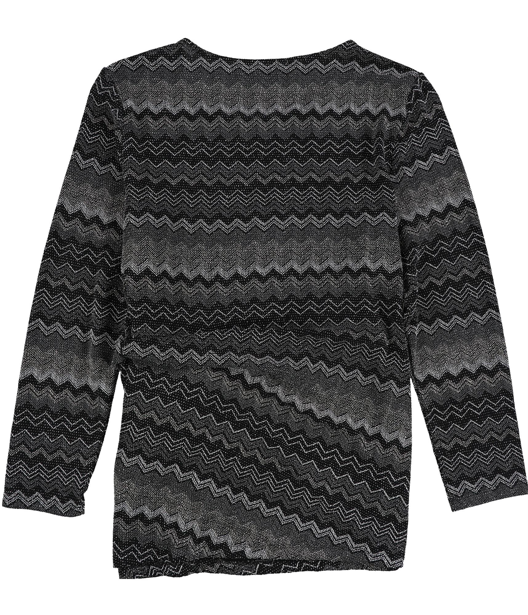 Product Details Gender: Womens Material: 92% Nylon, 4% Elastane, 4% Metallic Sleeve Length: 3/4 Sleeve Collar Style: Crew Neck Pattern: Chevron Density: Medium Weight Season: All Seasons Occasion: Casual Theme: Modern Country of Manufacture: Indonesia