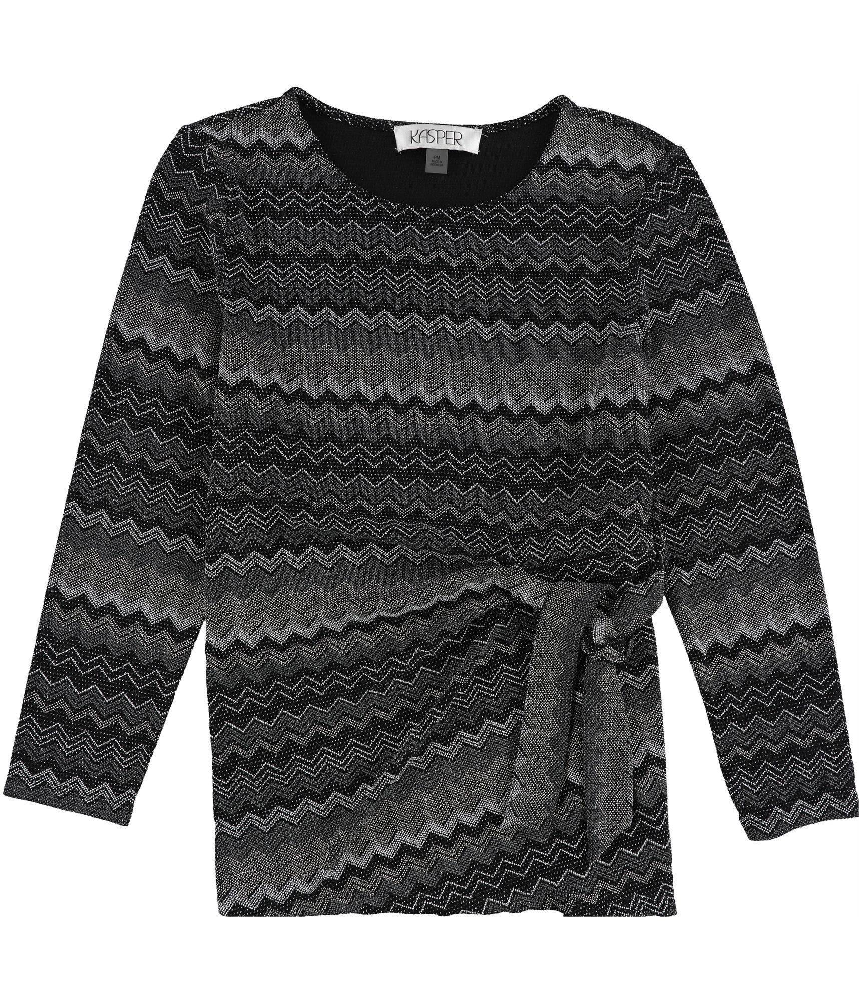Command attention with this stunning Kasper chevron stripe shell blouse. Crafted from a dynamic blend of nylon, metallic, and elastane, this top offers a comfortable yet chic fit with a sophisticated sheen. The eye-catching chevron pattern, combined with a flattering tie detail at the waist and a classic crew neck, creates a modern silhouette that’s perfect for any occasion. Imagine yourself stepping out in this piece, feeling confident and stylish, whether you're heading to a casual brunch or a more dressed-up evening event. Its medium-weight density ensures a flattering drape, making it a versatile addition to your wardrobe. Hand wash for easy care, so you can enjoy this fashionable statement piece season after season.