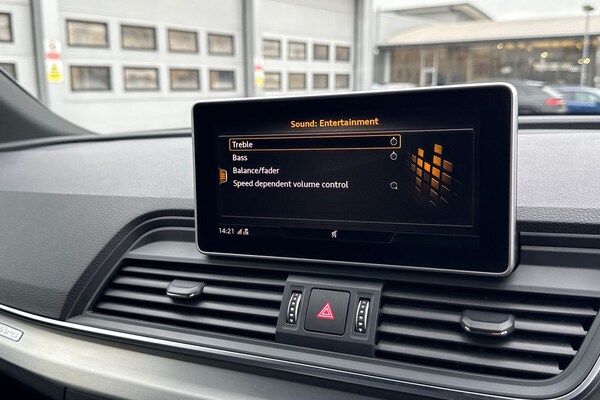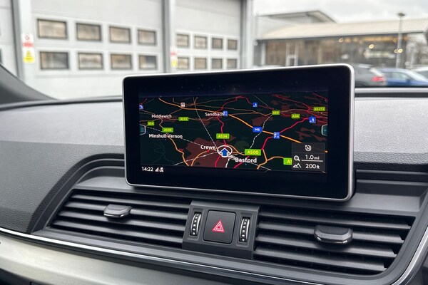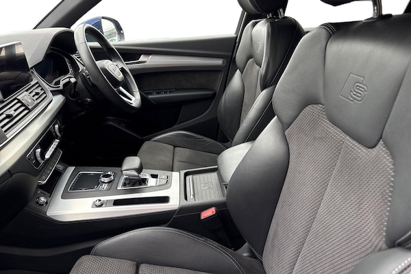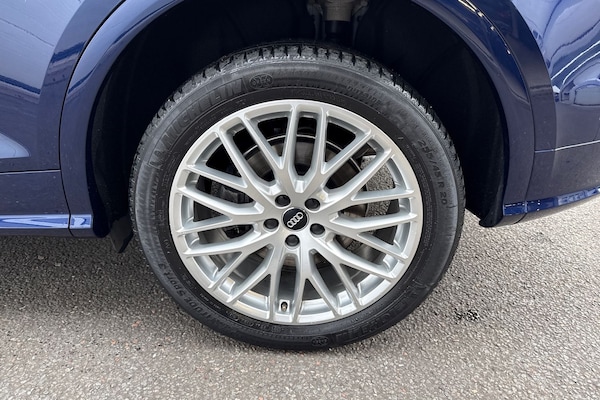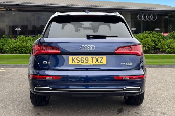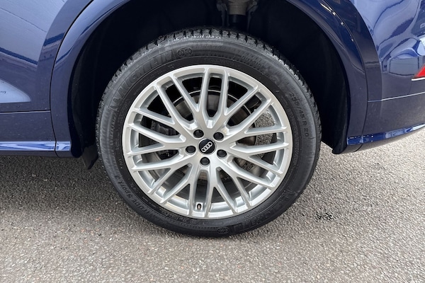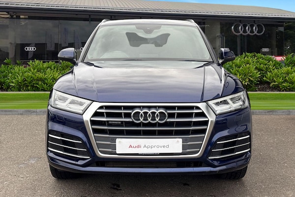 Take a look at this Audi Approved Q5 S Line 45 TFSI Quattro in Navarra Blue with its optional 20"" 10-Y-spoke alloy wheels which look superb out on the roads. The LED headlights with LED rear lights create that strong visibility in all weather conditions. The deluxe 3-zone electronic climate control allows the driver and passengers to adjust to their prefered climate on all journeys. This Q5 has some fantastic optional extras, such as the Technology pack which does include the MMI Navigation plus, allowing you to plan and follow routes, with ease. Some other brilliant features include the heated front seats which are perfect for those cooler mornings. The Audi phone box with wireless charging, maks fully charging or just topping up your phones battery on any journey, a breeze. The privacy glass creates that additional privacy for passengers on all journeys. The multimedia interface allows the driver and front passenger to access a range of different media, such as Apple Carplay and Android Auto, allowing you to use apps like Spotify, Google Maps, Apple Music and other apps also. The Audi drive select feature lets you choose your prefered drive mode on any journey, for a more personalised driving experience. The driver assist can also be adjusted to your driving preference on all journeys. DAB/FM radio is fitted to this vehicle which gives a larger variety of stations for all passengers and driver to listen to and enjoy on any journey in this vehicle. The interior is f...