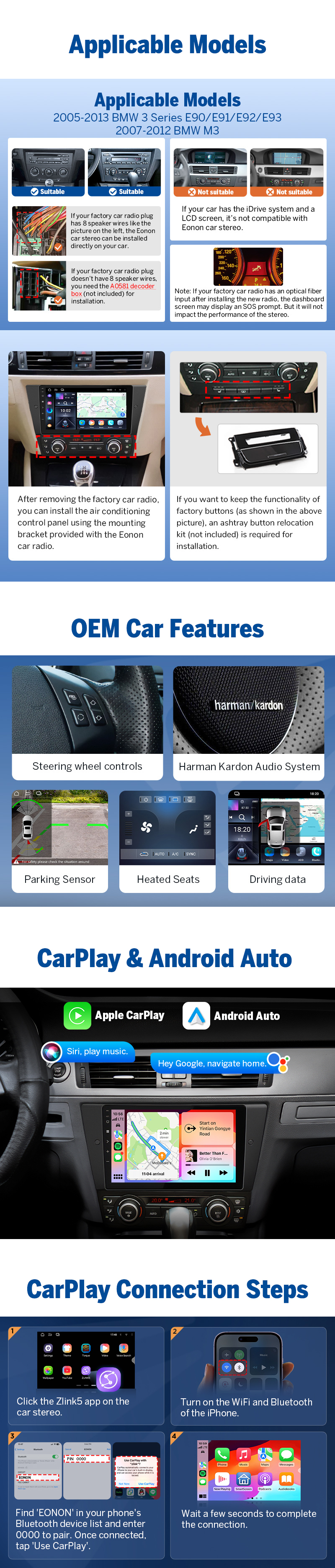 β Das Eonon E90X7 Android 14 Autoradio ist die ideale Lösung für BMW 3er E90/E91/E92/E93-Fahrer, die ein kompatibles, fahrzeugspezifisches Android 14 Autoradio mit Wireless CarPlay, Android Auto kabellos, hochwertigem DSP-Sound, großem Touchscreen und vollständiger OEM-Integration suchen. Passgenau, langlebig und optimal für den deutschen Mittel- bis Premium-Markt. 0