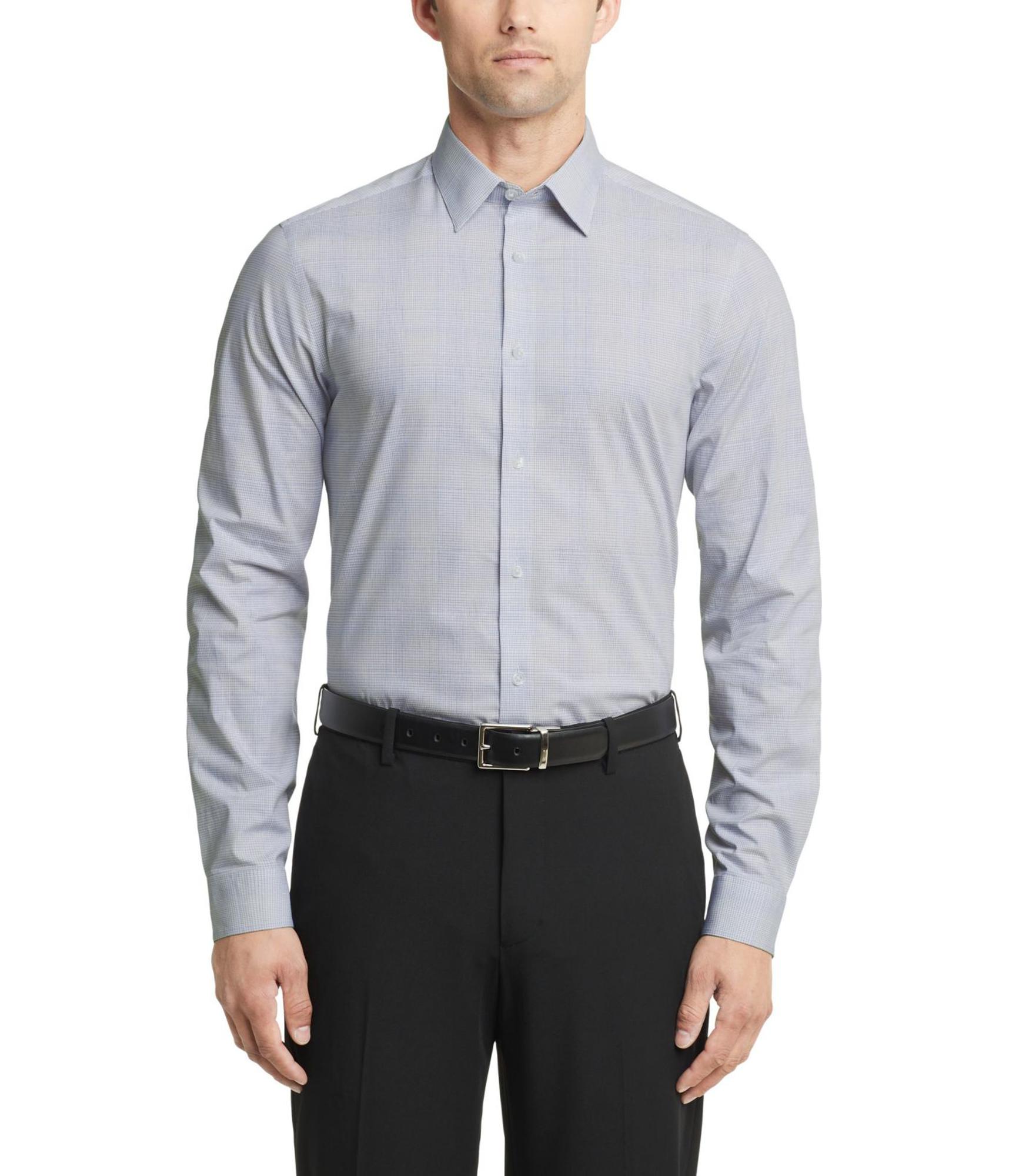Expertly woven with a subtle stripe pattern, this long-sleeved dress shirt offers a sharp, modern foundation for any office-ready ensemble. The slim fit contours your frame for a sleek silhouette, while the point collar and button-front closure exude timeless sophistication. Designed with a medium-weight feel and a curved hemline that sits perfectly at the hip, this shirt provides comfort and a polished look throughout your workday. Its construction ensures it drapes beautifully, moving with you from your morning commute to after-hours meetings.
