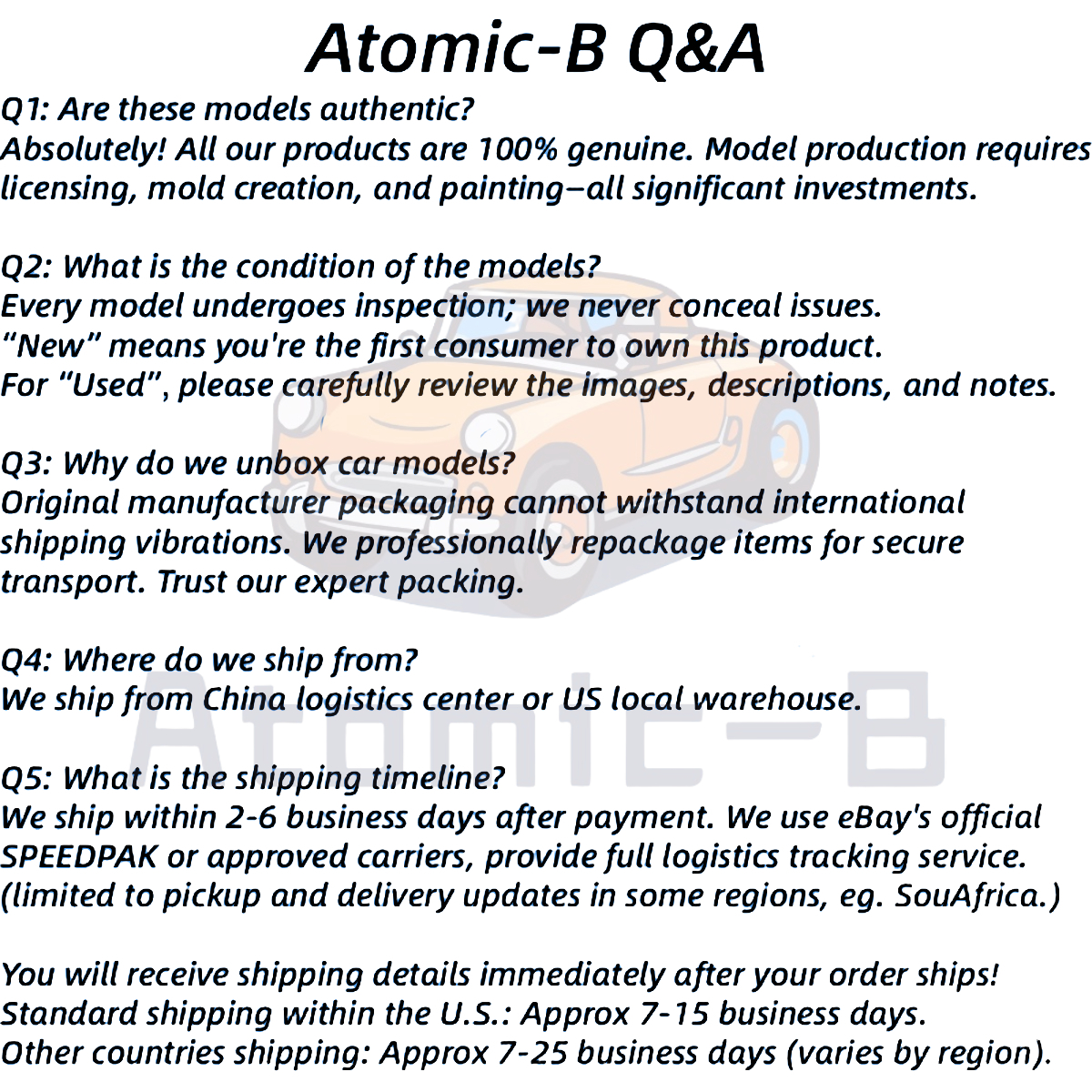Special Note: Used in our store does not mean that it has been used or placed, it only means that there may be traces left by age due to the long storage time (such as alloy car paint surface micro-raspies, resin window deglossing, specific details will be explained). Recommended for purchase by professional collector enthusiasts.