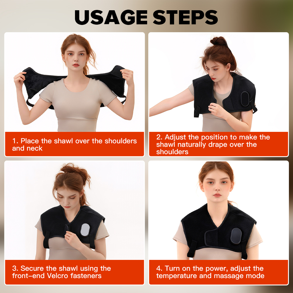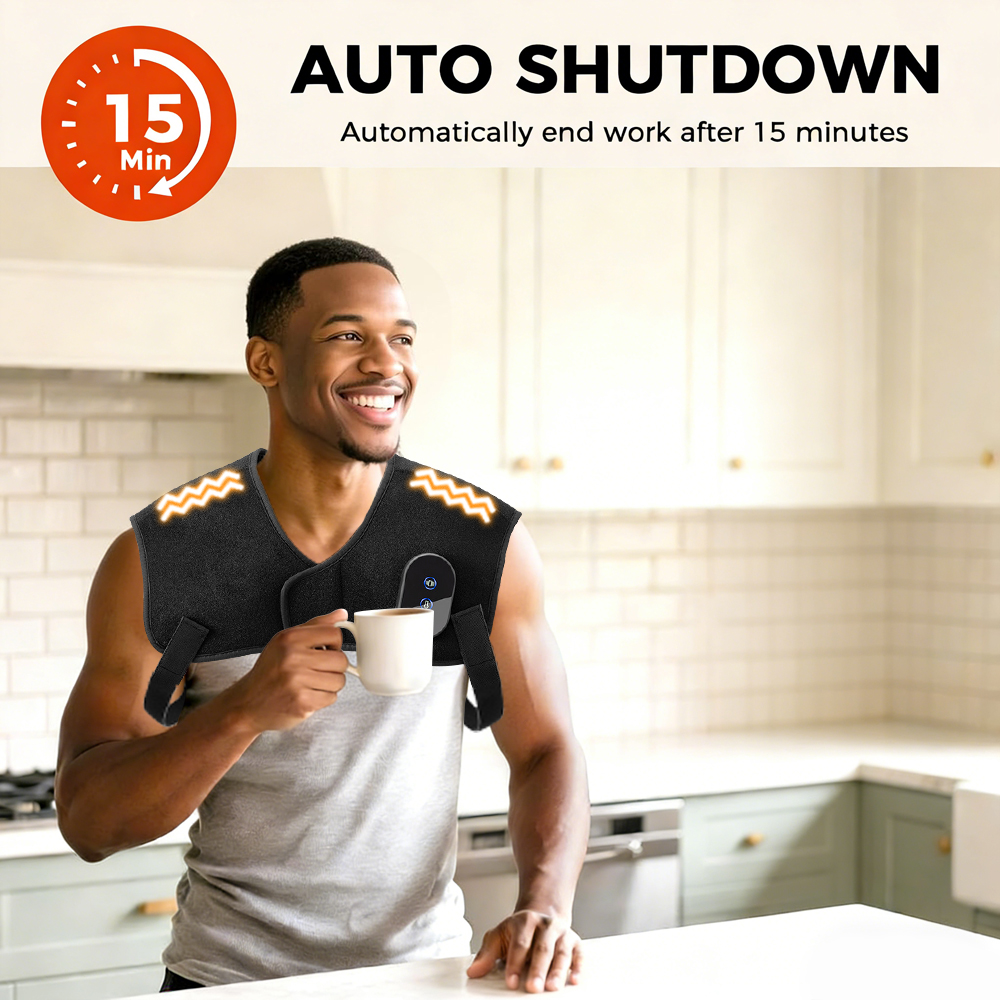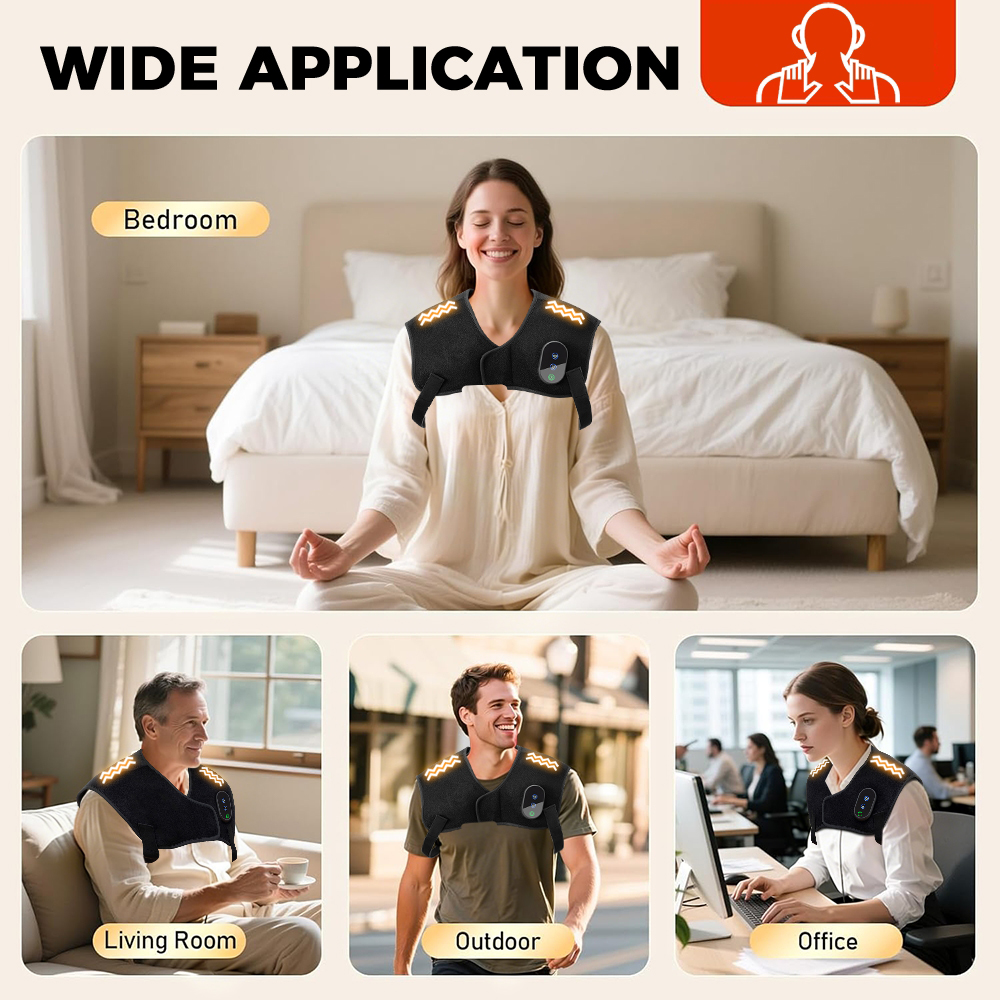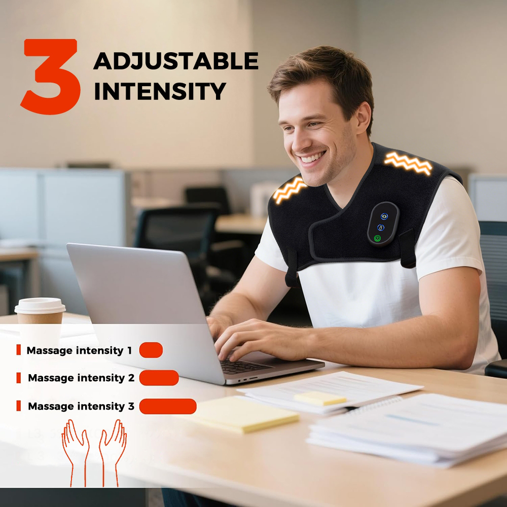 3 Adjustable Intensities: This massager is equipped with vibration massage modules on both sides of the shoulders, featuring 3 adjustable intensity levels to cater to different comfort demands of users. Whether you prefer a gentle touch for relaxation or a stronger intensity for deep muscle relief, this function can meet your needs.
