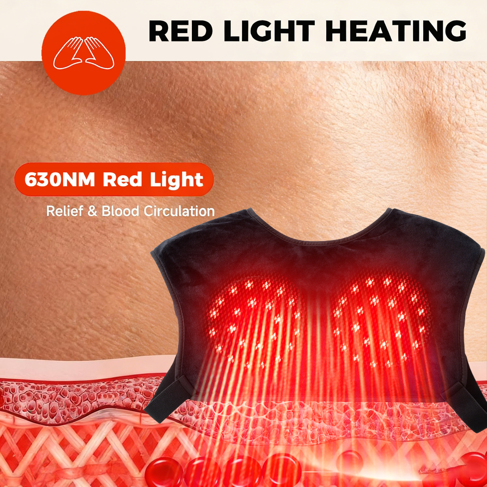 Back Red Light Heating: The massager integrates red light therapy and heating function on the back, achieving synergistic therapeutic effects with deep penetration. It emits red light with a wavelength of 630nm which directly irradiates the back muscle groups. Combined with the thermal effect generated by the heating function, this dual-action design boasts extremely strong penetrability—able to reach deep into underlying muscles, tendons and tissues that ordinary massage or heating can hardly reach.