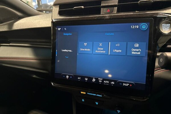 Driver impairment monitor, Emergency call service, Ford easy fuel, Full digital 12.8 instrument cluster, Lane keeping aid with lane departure warning, Power assist steering, Selectable drive modes(Normal, Eco, Sport, Slippery and Trail), Speed sign recognition, Automatic headlights with rain sensing wipers and auto high beam, Front fog lamps, LED daytime running lights, LED rear lamps, LED third brake light, Power foldable heated door mirrors with puddle lamps and puma logo protection, Quickclear heated windscreen, Rear privacy glass, Rear side wing doors, Rear wiper, ST-Line X body styling kit, 3 seat bench in 2nd row, 4 way lumbar support for passenger seat, Centre console with armrest and stowage, Electronic automatic temperature control (EATC), Ford megabox extended bootspace, Front and rear head restraints, Front floor mats, Manual 4 way driver seat adjust with lumbar adjustment, Single front passenger seat, ST-Line X Premium synthetic leather upholstery, 3 rear seatbelts, Child safety lock, Electronic stability control (ESC) and hill start assist, Pre-collision assist with autonomous emergency braking, pedestrian/cyclist detection & post-collision braking, Tyre pressure monitoring system (TPMS)