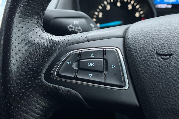 Digital clock, Easy fuel capless refuelling system, Eco mode, Electric boot release, PAS, SYNC 3 nav system with DAB radio/CD, 8 colour touch screen, bluetooth, emergency assistance, advanced voice control and 6 speakers, TFT cluster screen, Trip computer, 'Quickclear' heated windscreen/heated washer jets, Black honeycomb front grille, Body colour bumpers, Body colour door handles, Body colour door mirrors, Body colour rear spoiler, Body colour side skirt, Body styling kit, Chrome finish on upper door line, Electric adjustable heated door mirrors, Front fog lights, Front variable intermittent wipers with electric wash, Heated rear window, LED daytime running lights, Rear LED lights, Tailgate wash/wipe, 3 spoke sports leather steering wheel, 60/40 split back and cushion rear seats with 2 height adjustable headrests, Air conditioning - CFC-free, Black headlining, Centre console with sliding front armrest, Cloth upholstery, Driver's seat manual height adjust, Driver's seat with adjustable lumbar support, Front floor mats, Height adjustable front headrests, Isofix child seat preparation, Reach + rake adjustable steering column, Sports pedals, Sports style front seats, Stainless Steel Scuff Plates, ABS+Electronic Brake force Distribution, Driver airbag, ESP with traction control + emergency brake assist, Front inertia reel height adjustable seatbelts with pre-tensioners, Front passenger airbag, Front side airbags, Hill start assist, Side curtain airbags, Three rear inertia reel