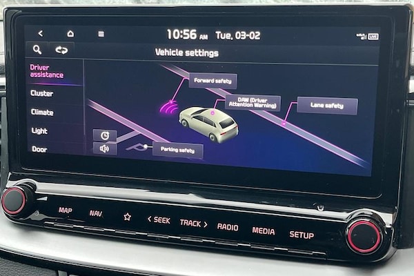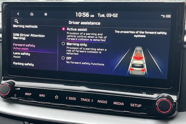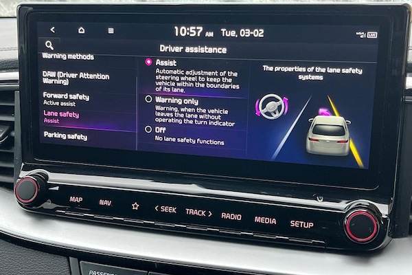 10.25 touchscreen satellite navigation, 4.2 supervision colour cluster display, Apple car play/Android Auto with voice control, Bluetooth with Voice Recognition & Music Streaming, Cruise control + speed limiter, Driver Attention Warning (DAW), Emergency call service, Emergency stop signalling system, Forward Collision-Avoidance Assist (FCA) - City/Pedestrian/Cyclist, Kia connect UVO, Lane Following Assist (LFA), Lane keep assist, Manual speed limit assist, Motor driven power steering, Rear parking sensor, Reversing camera system with dynamic guidelines (Integrated into centre fascia screen), Trip computer, All-round Electric Windows with Front Auto Up & Down Function, Auto dimming rear view mirror, Automatic defog system, Automatic headlights control, Body colour bumpers, Body colour door mirrors, Body colour exterior door handles, Body coloured rear spoiler, Chrome window surround, Electric adjustable/heated/folding door mirrors with LED Indicators, Heated rear window with timer, High beam assist, High gloss black and white chrome coated radiator grille, LED daytime running lights, LED front fog lights, LED Headlights, LED High-mounted Brake Light, LED rear combination lights, LED rear fog light, Privacy glass (rear side windows and tailgate), Rain sensing front wipers, Rear side wing doors, Rear wash/wipe, Roof rails, Tinted glass, Wide view drivers door mirror, Windscreen Washer Level Warning, 1 x Front 12V socket, 12V power socket in luggage compartment, 3 seat bench in