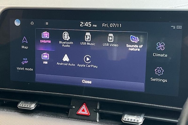 12.3 Display with navigation, 4.2 supervision colour cluster display, Apple car play/Android Auto with voice control, Drive mode selector, E-call, Forward collision avoidance assist (FCA) - city/pedestrian/cyclist/junction covering, Front and rear parking sensors, Highway Driving Assist (HDA), Intelligent speed limit assist, Kia Connect (UVO), Lane Following Assist (LFA), Lane keep assist, Low washer fluid warning, Rear view monitor, Reversing camera system integrated into centre fascia screen, Smart cruise control with stop and go functionality, Speed sensitive power steering, Trip computer, Windscreen washer level indicator, All round electric windows with drivers and front passenger auto up/down function, Automatic headlight control system, Automatic window defogger, Backlite glass heated with timer, Body colour and black bumper with silver accents, Body colour exterior door handles, Body colour radiator upper garnish and door garnish, Electrically adjustable/heated/folding door mirrors with LED indicators, Front and rear chrome skid plates, Gloss black door mirrors, Gloss black radiator grille, Gloss black side sill and wheel arch body mouldings, Glossy black roof rack, High beam assist, Interior electrochromic mirror, LED daytime running lights, LED front fog lamps, LED headlamps (low and high beam - MFR type), LED High mounted stop light, LED rear combination lamp, Rain sensing wipers with aero blades, Rear fog lamp, Rear privacy glass, Rear side wing doors, Rear spoiler,