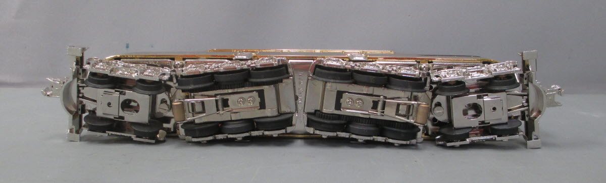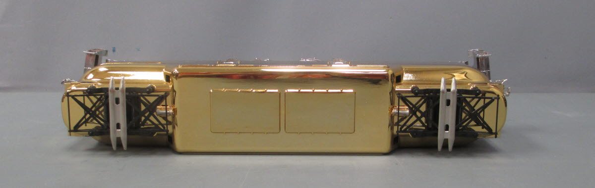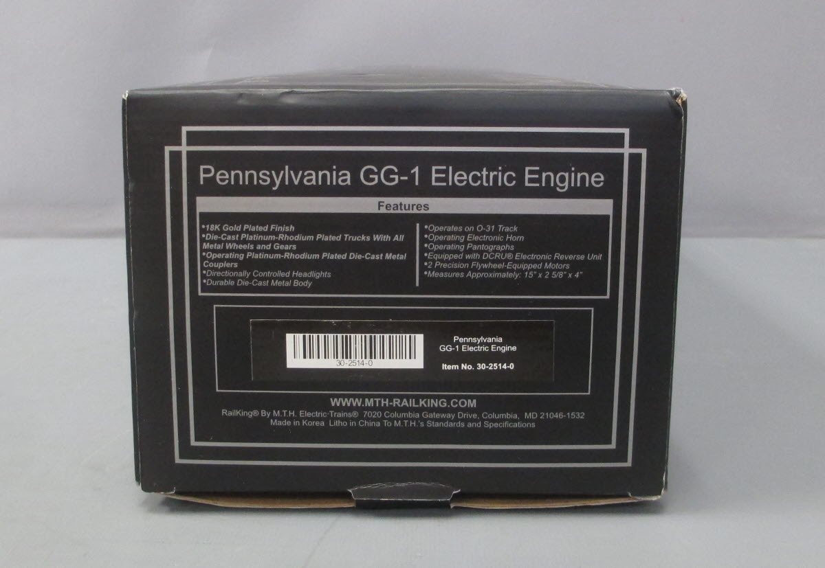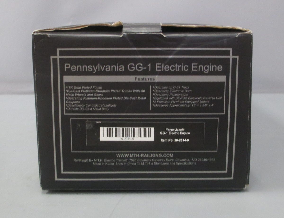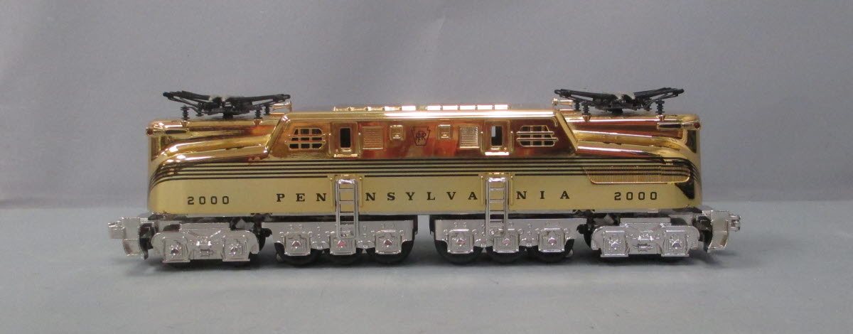 Here is a super nice MTH 30-2514-0 O Pennsylvania GG-1 Electric Engine. This was released by MTH in 1999 as part of its Milenium series to celebrate the new millennium. It features a 14K Gold plated die-cast body and has dual motors, DCRU electronic reverse, pantographs, and more. MTH also releases a set of matching Gold plated passenger cars in 1999 as well.