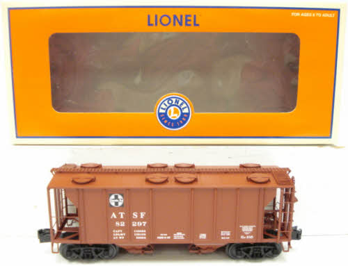 Here is a Lionel 17063 Santa Fe PS-2 Covered Hopper. This car features opening roof hatches, die-cast metal sprung trucks, die-cast metal operating knuckle couplers, and metal wheels and axles. It measures 10 1/4 inches long.