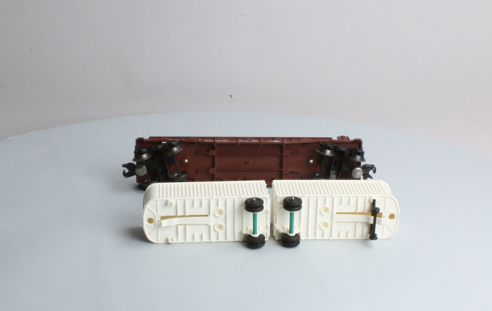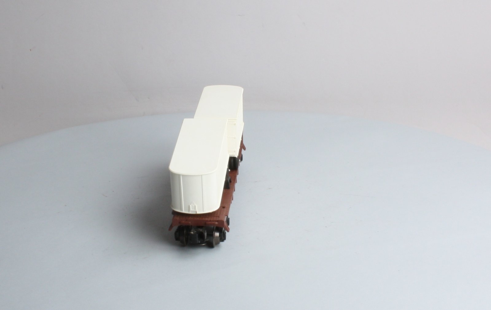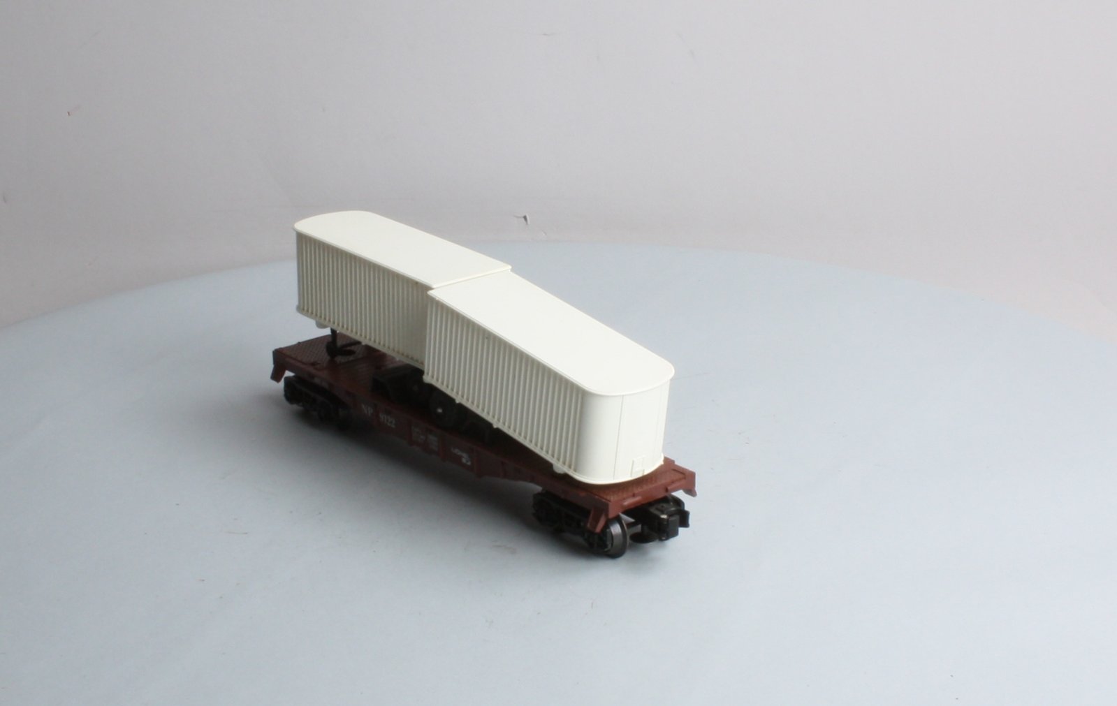 Here is a Lionel 9122 Northern Pacific Flatcar with Vans. This flatcar features 2 removeable vans, plastic trucks, operating knuckle couplers, metal wheels and axles.