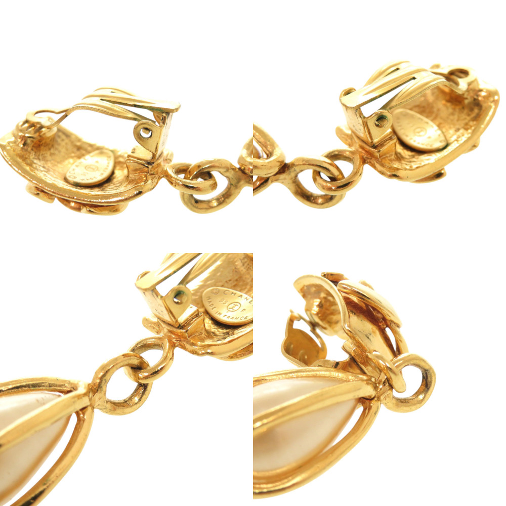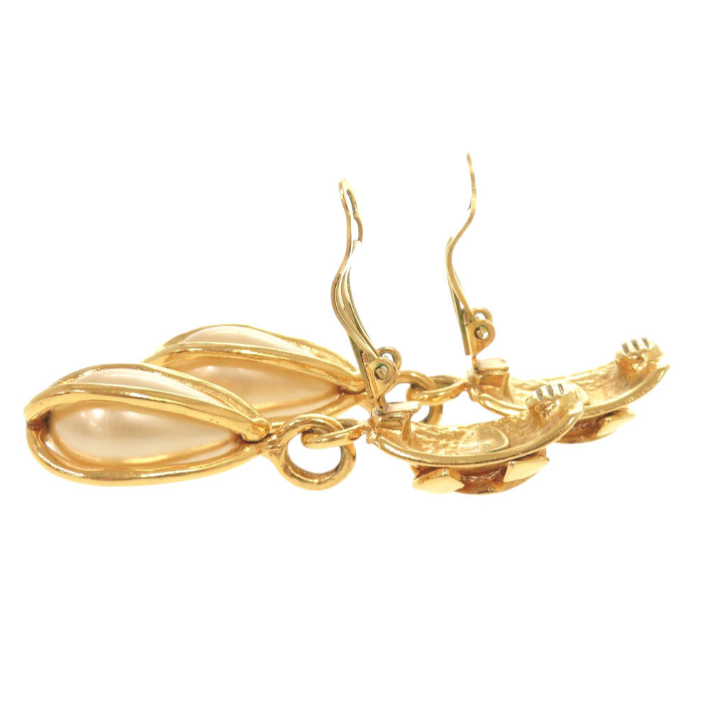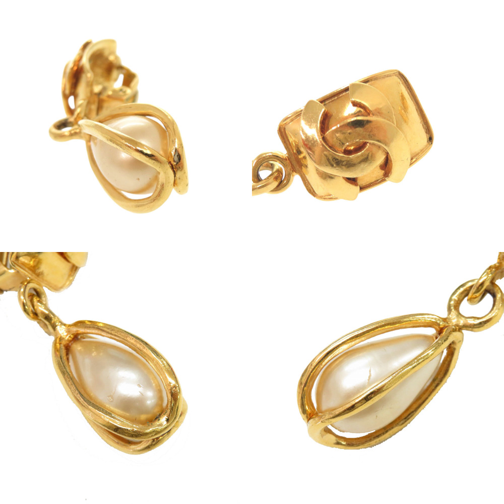 AUTHENTIC CHANEL Vintage CC Mark Earrings Gold Metal/Faux pearl