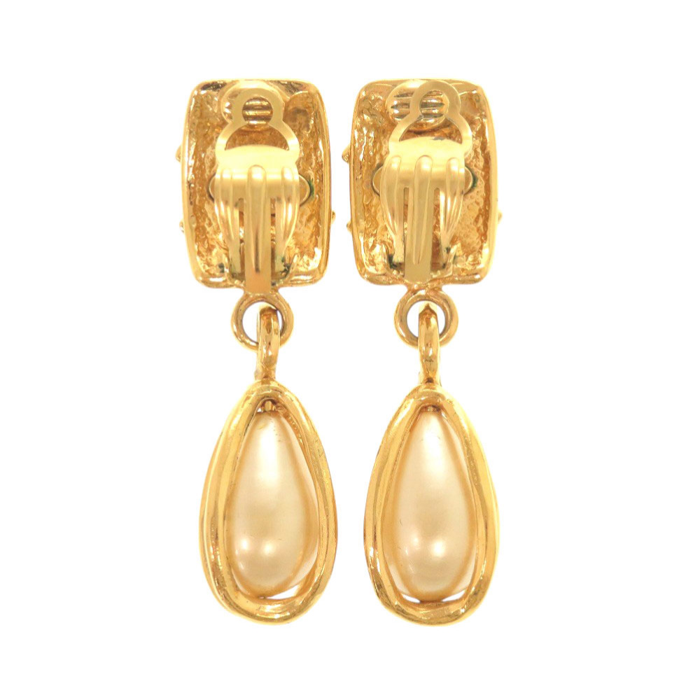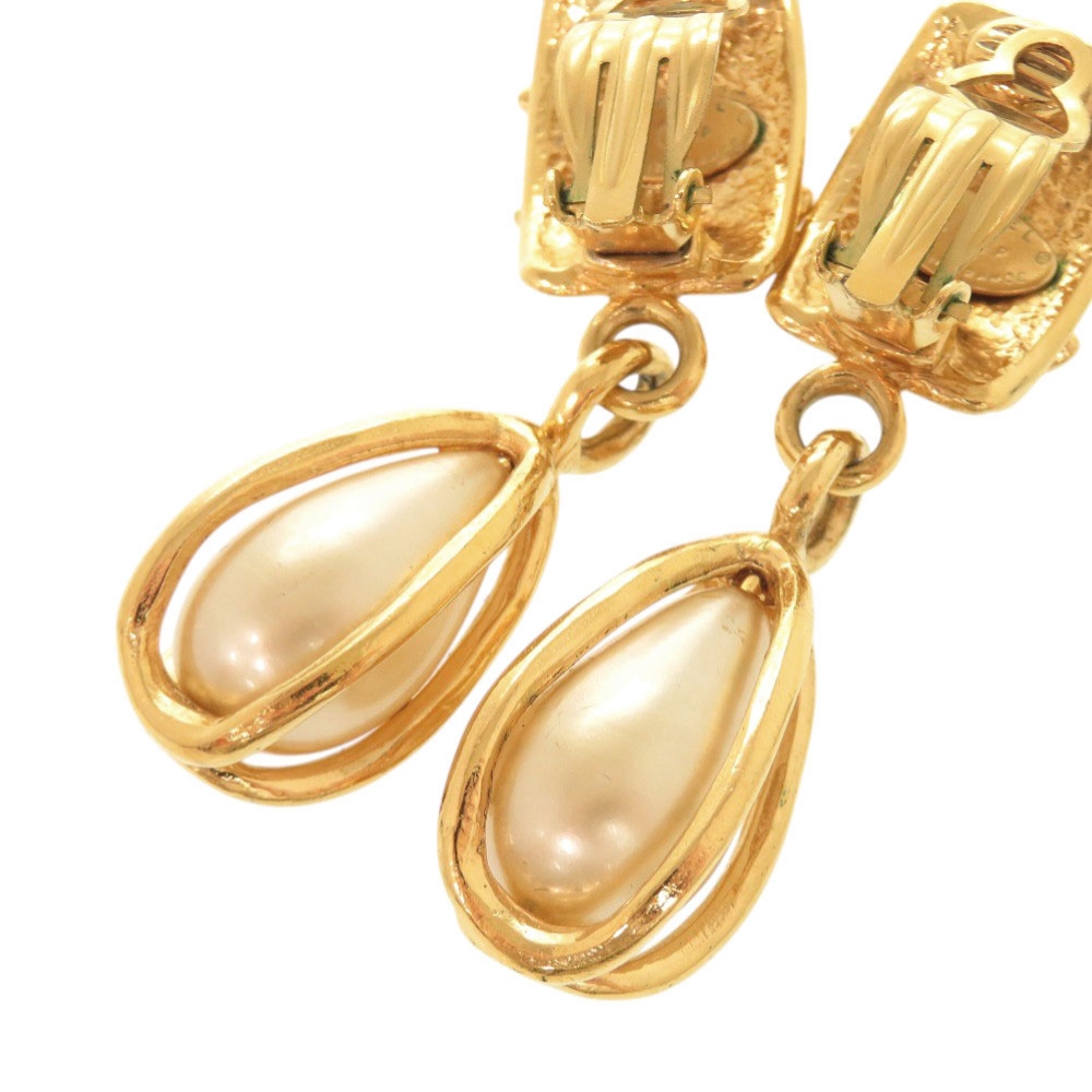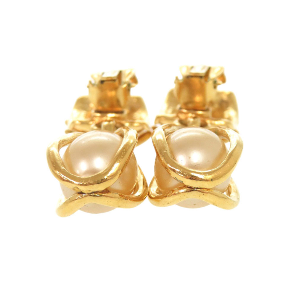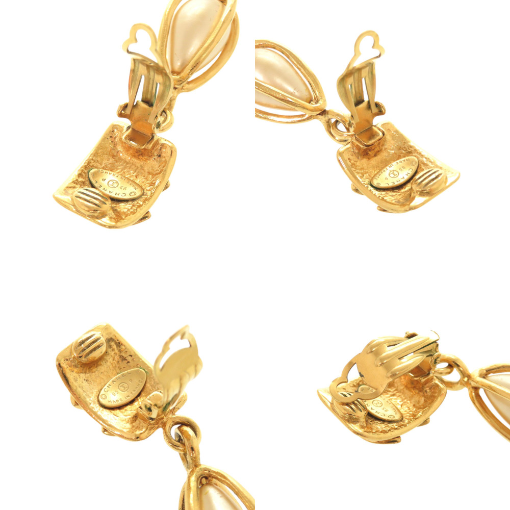 AUTHENTIC CHANEL Vintage CC Mark Earrings Gold Metal/Faux pearl