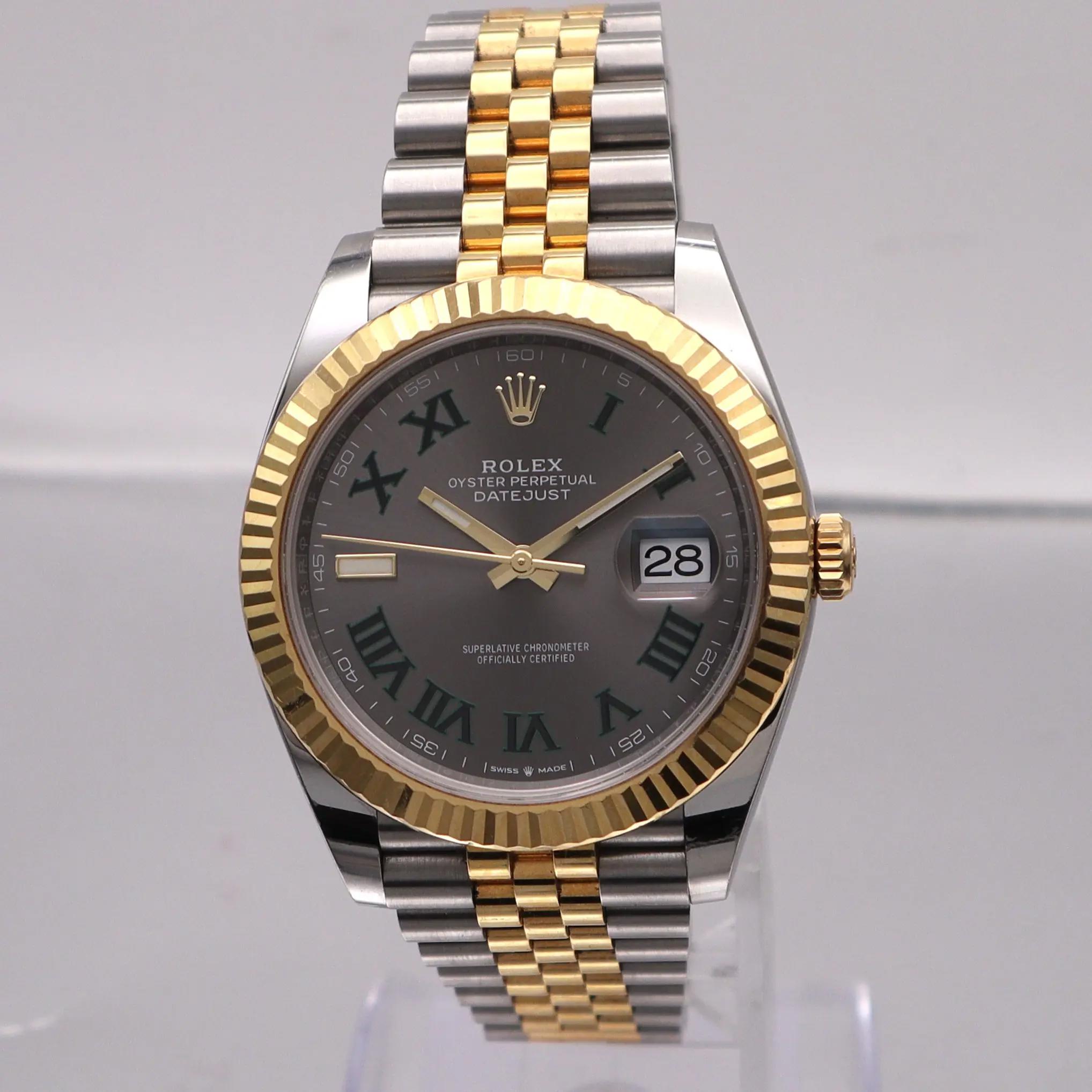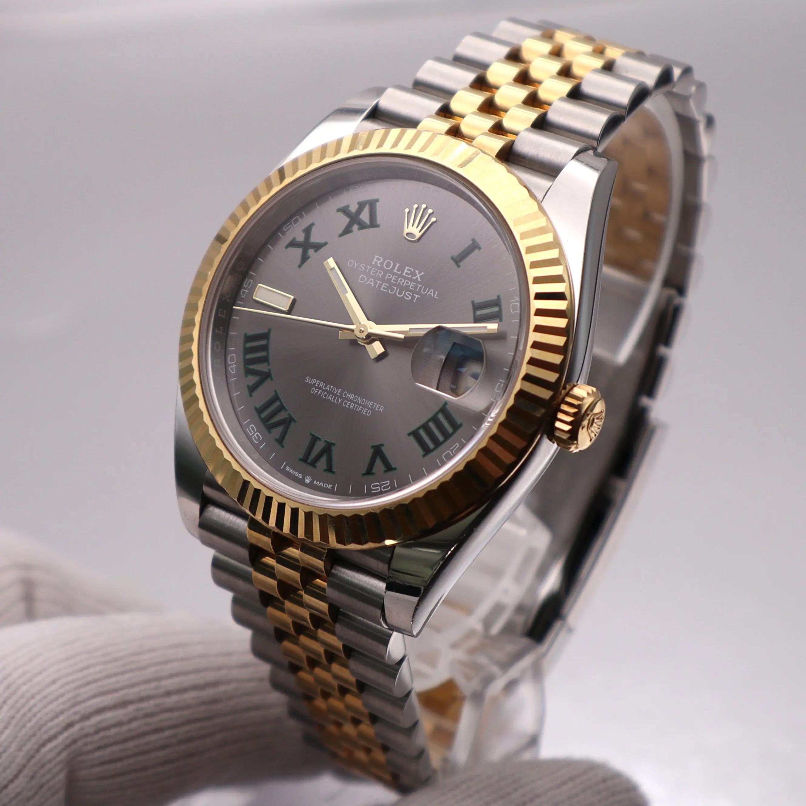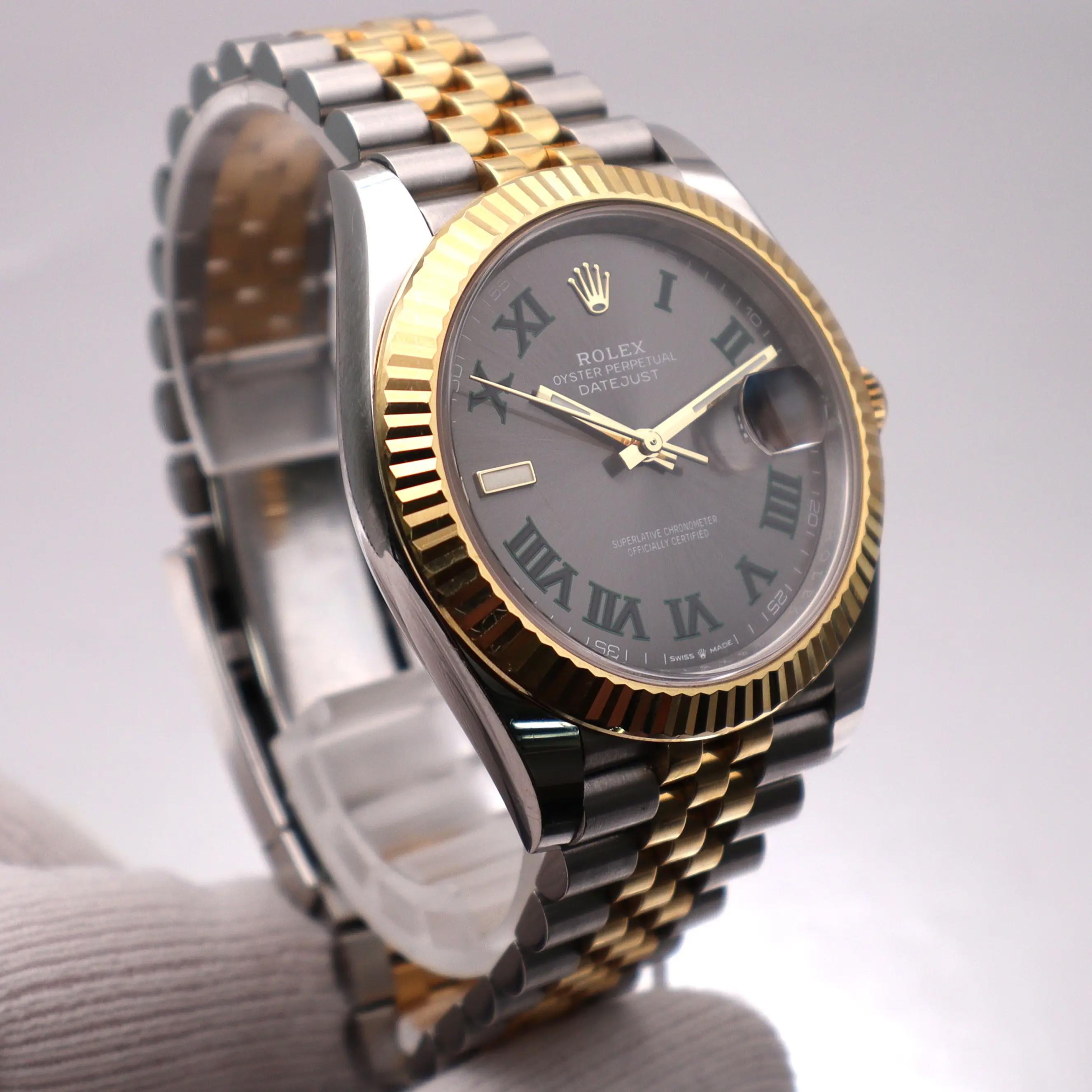 Rolex Datejust 41 18K Yellow Gold Steel Wimbledon Dial Mens Watch 126333