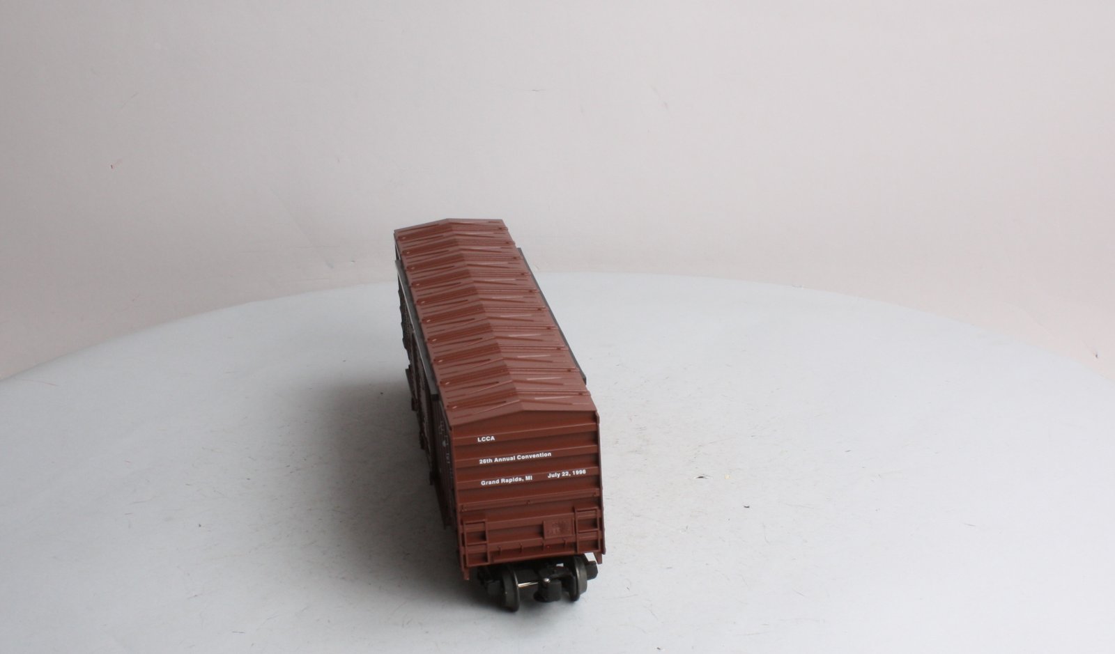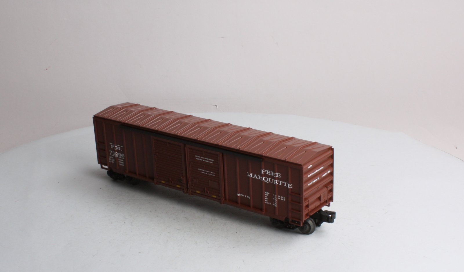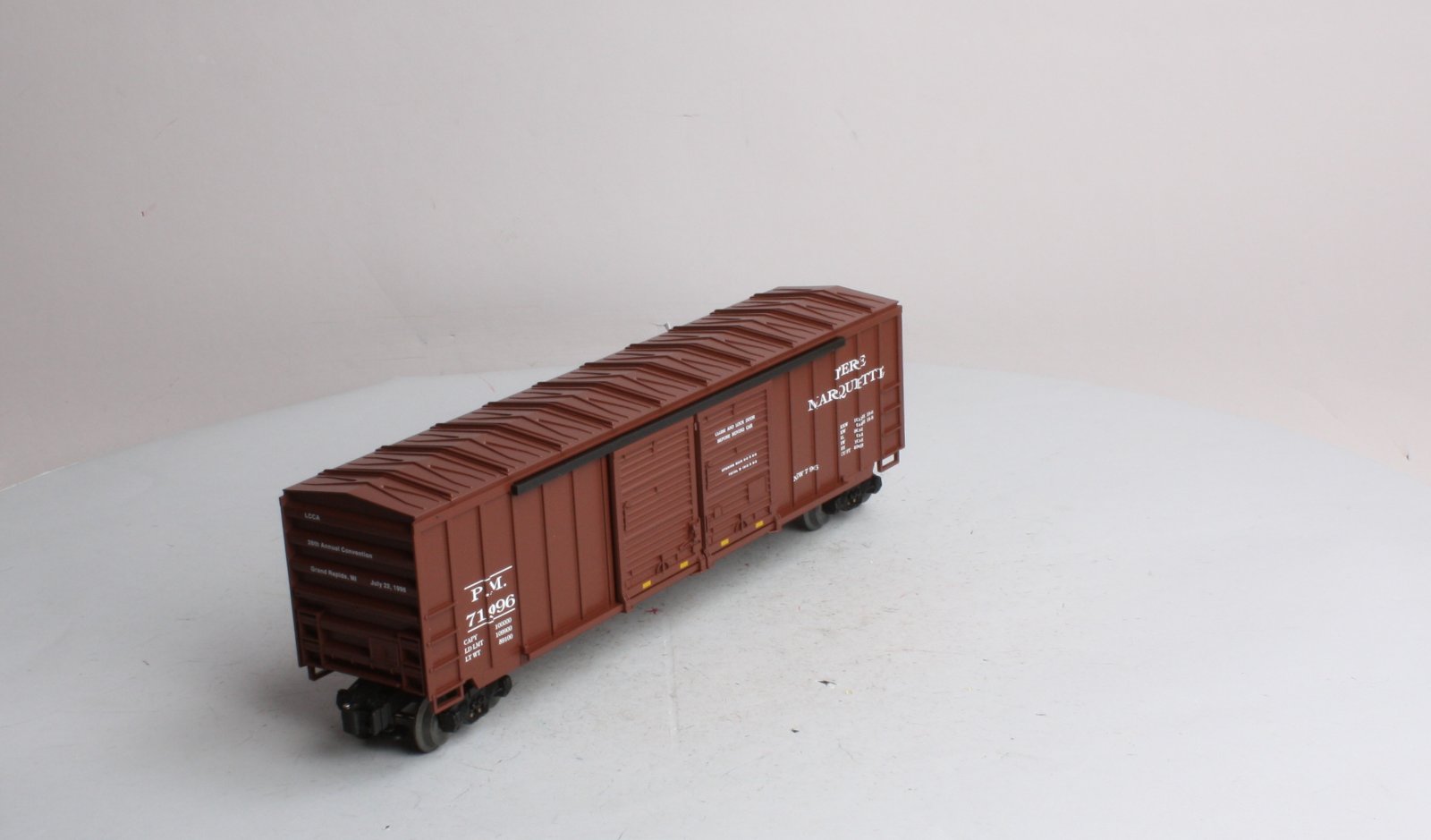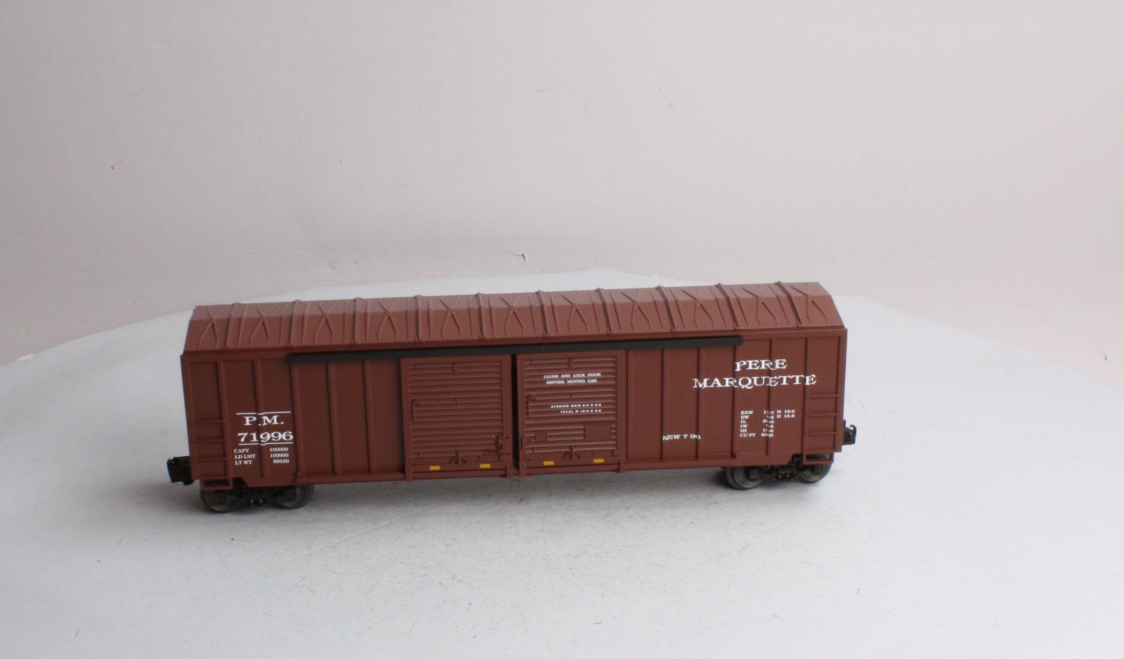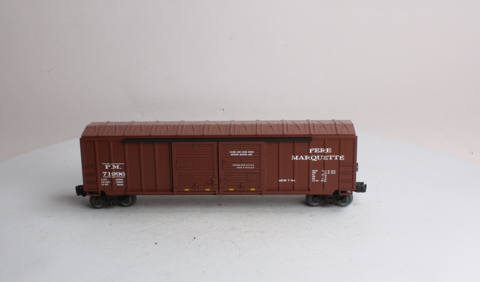 Here is a Lionel 6-52090 O Gauge Pere Marquette LCCA-1996 Double Door Boxcar #71996. This boxcar features sliding doors, die-cast metal sprung trucks, die-cast metal operating knuckle couplers, metal wheels and axles.