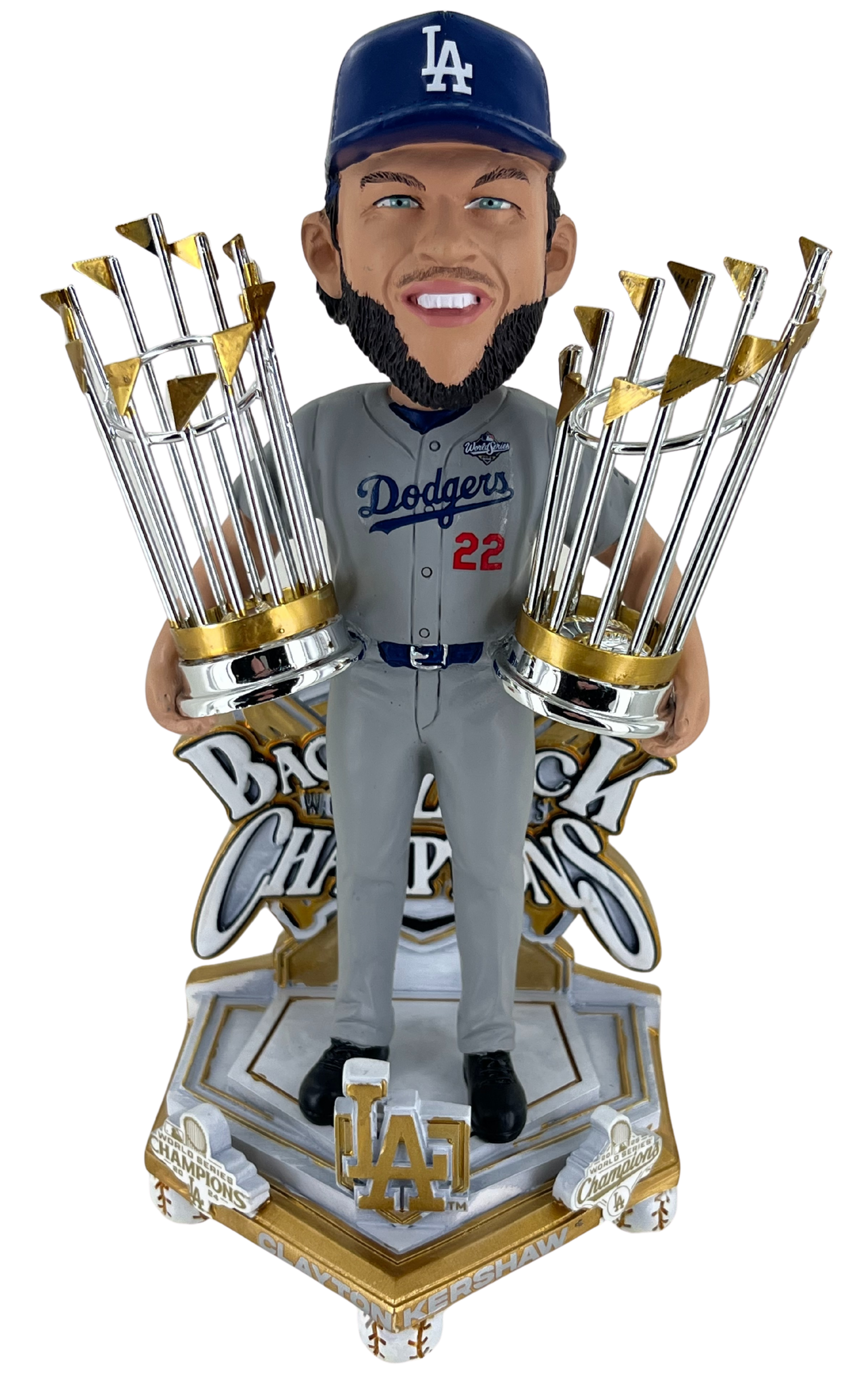 The Dodgers are Back To Back World Series Champions! Celebrate the dynasty in your collection with this Clayton Kershaw Los Angeles Dodgers 2025 Back To Back World Series Champions Celebration Bobblehead.