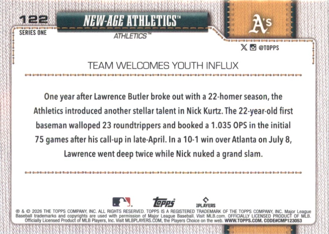 | 2026 Topps Series 1 New-Age Athletics Athletics #122 |