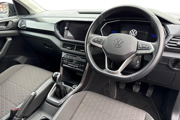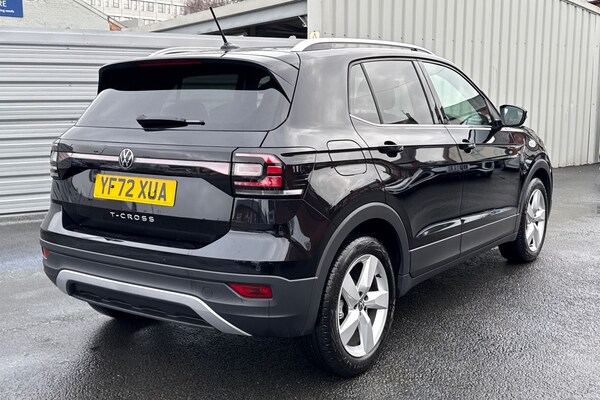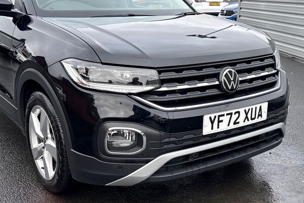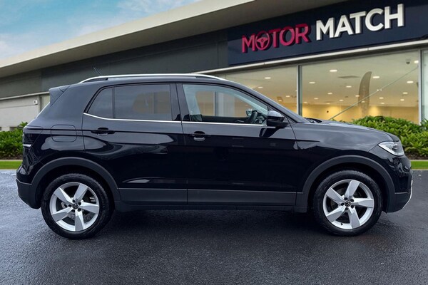 Finished in sleek Black, this Volkswagen T-Cross 1.0 TSI SEL offers a perfect blend of style, practicality and efficiency. Powered by a responsive 1.0 TSI petrol engine paired with a manual gearbox, this Euro 6 compliant SUV delivers smooth performance with excellent fuel economy, making it ideal for both city driving and longer journeys. The SEL specification is well equipped, featuring 17-inch Chesterfield alloy wheels that enhance its modern, confident stance. Inside, the cabin is thoughtfully designed with comfort and technology in mind. Air conditioning ensures a pleasant driving environment all year round, while the radio and Bluetooth connectivity allow seamless access to music and hands-free calls. For relaxed motorway driving, cruise control comes as standard, and satellite navigation helps you reach your destination with ease. Parking sensors provide added confidence when manoeuvring in tight spaces, making everyday driving and parking stress-free. With its elevated driving position, spacious interior and Volkswagens renowned build quality, the T-Cross is a versatile and reliable choice. This 5-door petrol SUV is ideal for families, commuters or anyone looking for a stylish yet practical vehicle with low running costs and strong safety credentials. A great all-rounder that combines comfort, technology and efficiency in a compact SUV package. This vehicle is part of the Motor Match Promise that includes a minimum 30 days or 1,000 mile warranty whichever is soone...