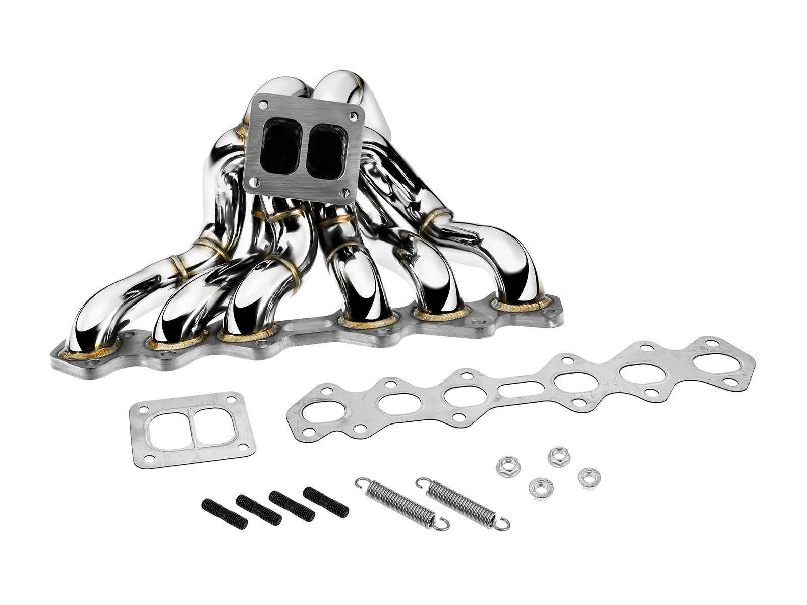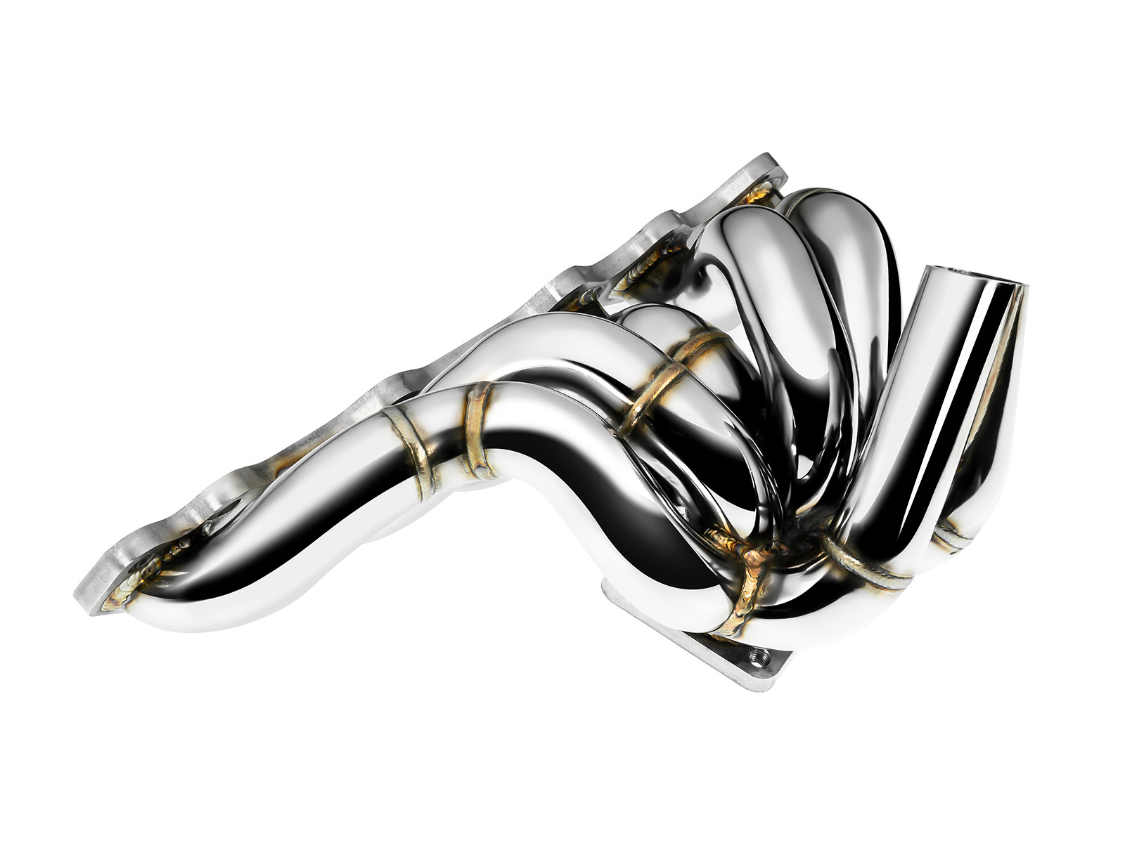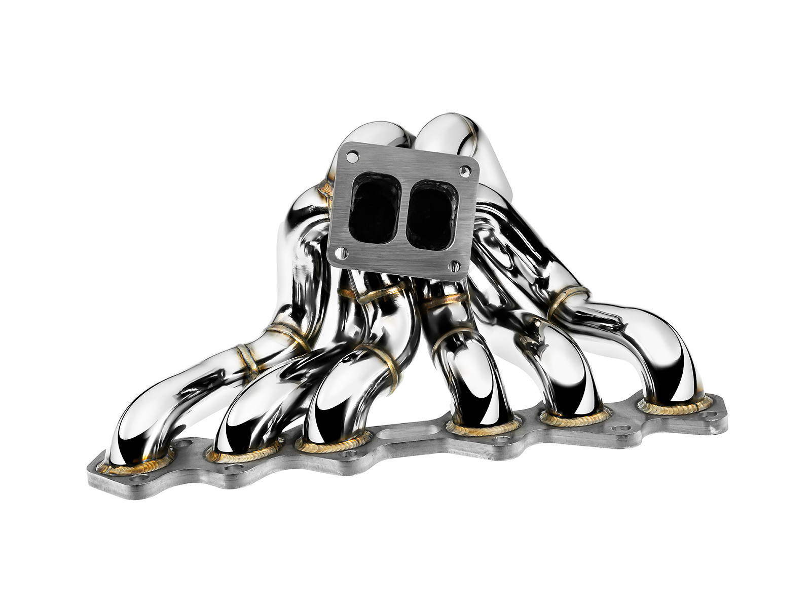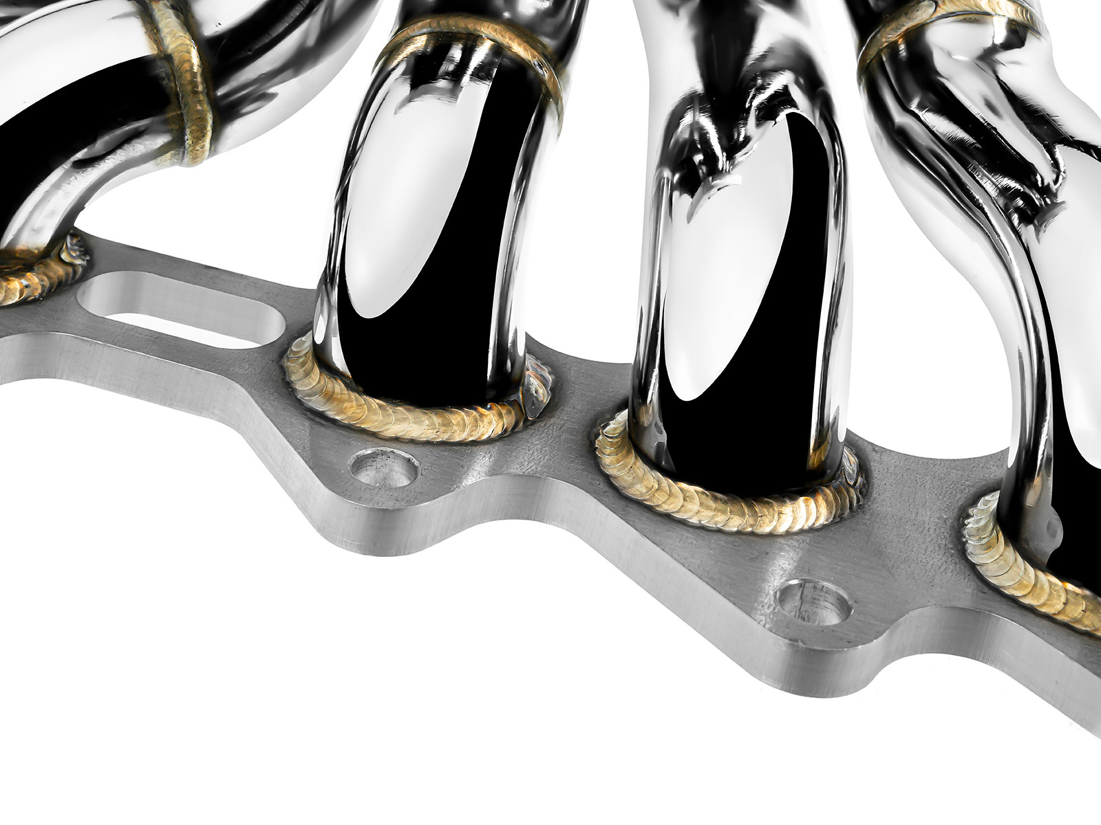 FMIC.Pro Abgaskrümmer ist aus Edelstahl 321 gefertigt und bietet dank Titanstabilisierung deutlich bessere Eigenschaften als vergleichbare Krümmer aus Edelstahl 304. Reduziertes Kriechen des Materials (Verformung) bei hohen Temperaturen und viel höhere Beständigkeit gegenüber aggressiven Abgasumgebungen verringern das Risiko von Rissen oder Korrosion erheblich. Darüber hinaus reduzierte die Verwendung von gebogenen Kanälen die Anzahl der geschweißten Elemente, was sich ebenfalls erheblich auf die Haltbarkeit des Krümmers auswirkt. Dank einer perfekten Anpassung der Laufraddurchmesser an die Öffnungen beider Flansche wird der Abgasstrom ohne Einschränkungen perfekt aufrechterhalten. Der perfekt gefertigte Krümmer-Mischsammler garantiert ein schnelles Spulen des Turboladers, zusätzlich unterstützt durch die Twin-Scroll-Konstruktion. Der Verteiler ist für die Verwendung mit einem oder zwei externen Wastegate-Ventilen vorbereitet.