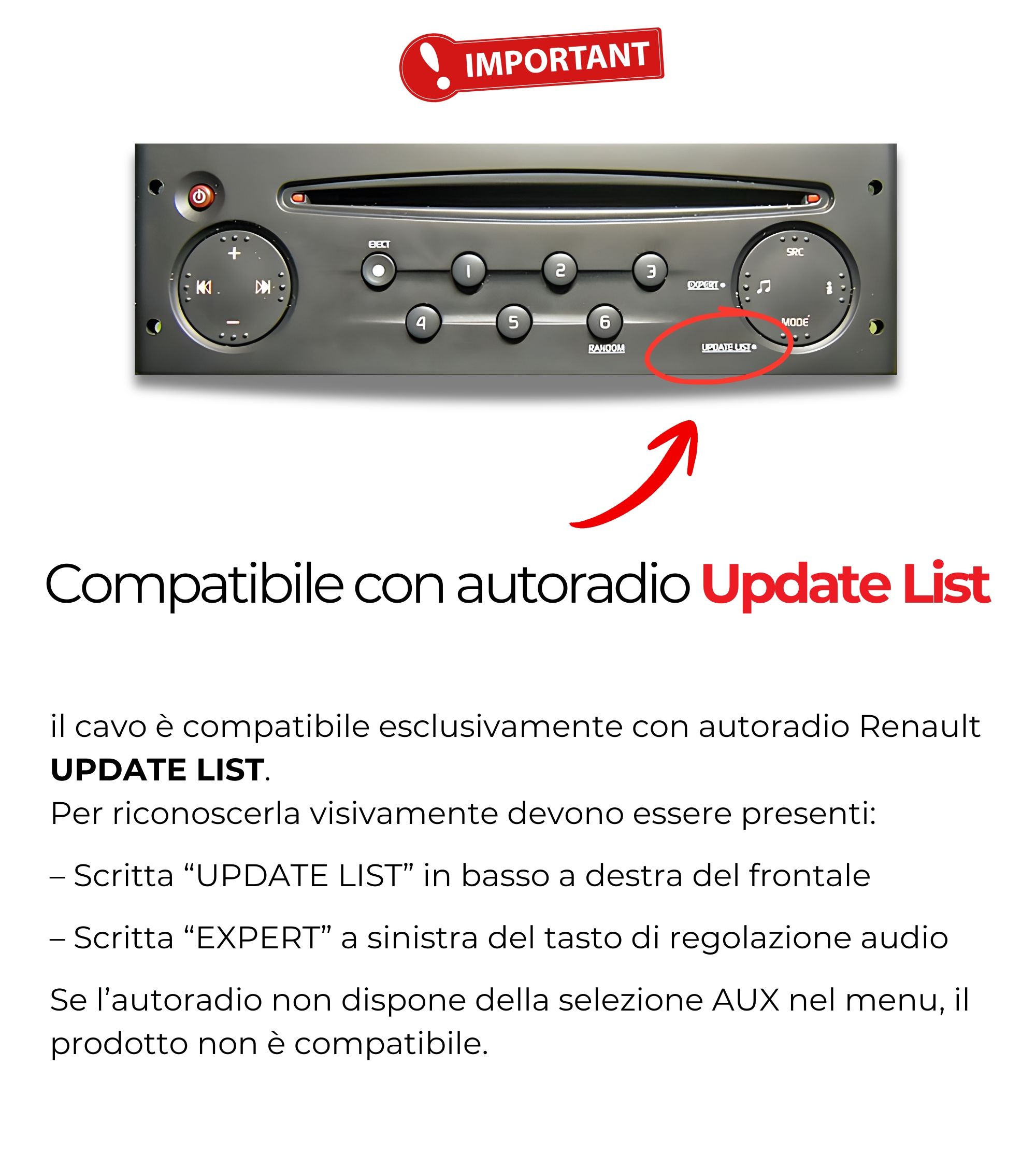 il cavo è compatibile esclusivamente con autoradio Renault UPDATE LIST.