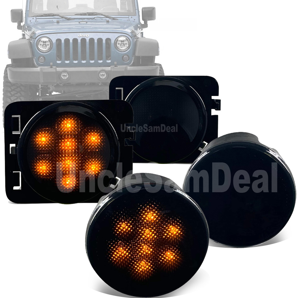 SMOKE LENS AMBER LED FRONT TURN SIGNAL LIGHT + SIDE FENDER LENS SET