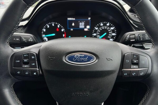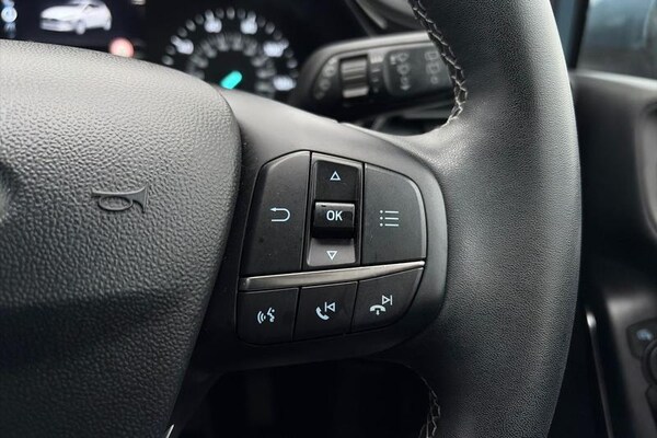 4.2 Colour TFT Ice blue illumination analogue cluster, Driver alert system, Electric power steering, Ford easy fuel, Lane keep assist, Lane keeping aid, Rear parking distance sensors, Selectable drive modes (Normal, Sport, Track), Trip computer, 3rd brake light, Auto high beam, Automatic headlights, Body colour bumpers, Body coloured electrically operated with side indicators, Electric front windows/one touch facility, Electric rear windows, High gloss chrome surround with satin grille insert, Quickclear heated windscreen, Rain sensing wipers and auto dimming rear view mirror, Rear privacy glass, Rear side wing doors, Rear wiper, 3 rear headrests, 3 seat bench in 2nd row, Adjustable head restraints, Centre console with opening armrest, 2x cupholders, 12v and USB, Cloth upholstery with metal grey stitching, Leather gear knob, Manual 2 way passenger seat adjust, Manual 4-way driver seat adjust, Manual air conditioning, Premium floor mats, Sensico wrapped steering wheel, Single front passenger seat, 3 point seatbelts on all rear seats, Electronic stability control with hill start assist, Front and rear seat belt warning, Manual child lock in rear doors, Tyre pressure monitoring system
