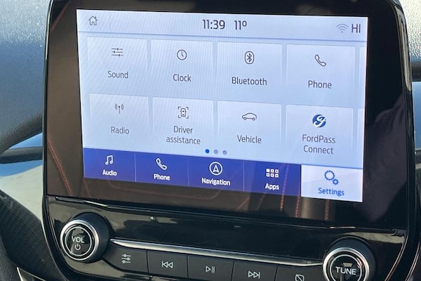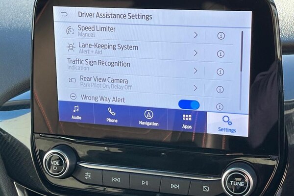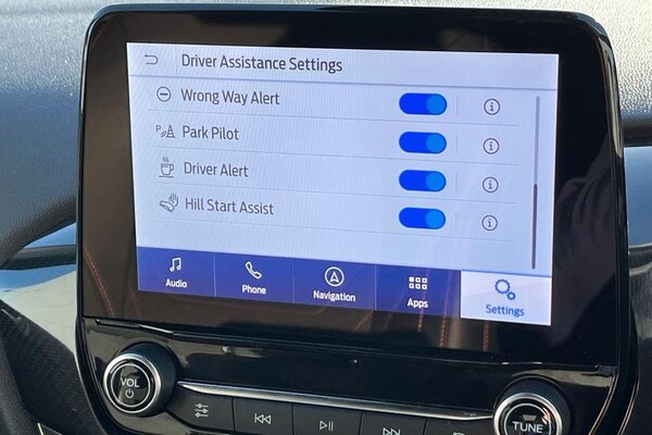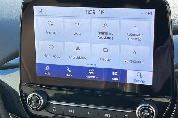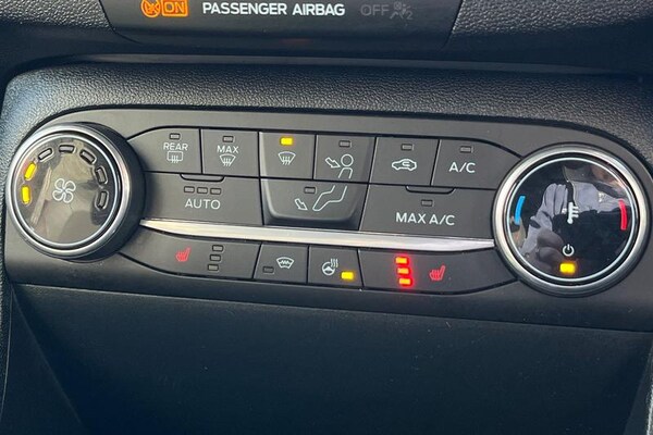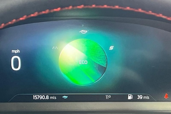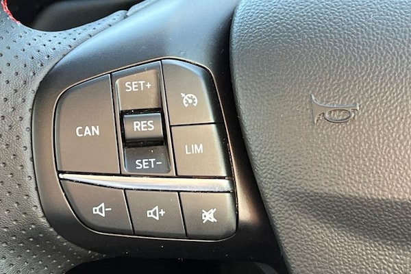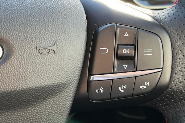 Driver alert system, Electric power steering, Ford easy fuel, Lane keep assist, Lane keeping aid, Rear parking distance sensors, Rear view camera, Selectable drive modes (Normal, Sport, Track), Trip computer, 3rd brake light, Auto high beam, Automatic headlights, Body colour bumpers, Body colour large rear spoiler, Body coloured electrically operated with side indicators, Electric front windows/one touch facility, Electric rear windows, LED rear lights, Quickclear heated windscreen, Rain sensing wipers and auto dimming rear view mirror, Rear privacy glass, Rear side wing doors, Rear wiper, Unique ST-Line grille, full bodystyling kit and large body coloured rear spoiler, 3 rear headrests, 3 seat bench in 2nd row, 4 way manually adjustable passenger seat, Adjustable head restraints, Black headlining, Centre console with opening armrest, 2x cupholders, 12v and USB, EATC - Electronic Auto Temperature control, Leather gear knob, Manual 4-way driver seat adjust, Premium floor mats, Sensico partial premium leather upholstery with red stitching, Sensico wrapped steering wheel, Single front passenger seat, 3 point seatbelts on all rear seats, Electronic stability control with hill start assist, Front and rear seat belt warning, Manual child lock in rear doors, Tyre pressure monitoring system