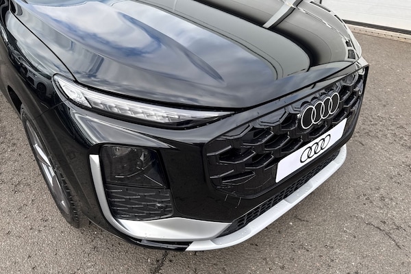 Take a look at this Brand-New Audi Q3 Sportback S Line TFSI in Mythos Black with its 19"" 5-arm design alloy wheels which look superb out on the roads. The LED headlights Plus with LED rear lights Pro, create that strong visibility in all weather conditions. This Q3 has some fantastic optional extras, such as the Sound and Vision pack which does include the Sonos premium sound system, for that excellent sound experience. It also includes the Head-up display which further enhances safety and convenience by allowing the driver to keep their eyes on the roads. Other brilliant features include the reversing camera which creates that additional vision and assists greatly whilst maneuvering those tighter spaces. The heated front seats are perfect for those cooler mornings. Another great feature, is the Audi phone box light with wireless charging, allowing you to fully charge or just top up your phones battery on any journey. The Ambient lighting package pro enhances the cabins ambience and improves visibility of controls at night. The multimedia interface allows the driver and front passenger to access a range of different media, such as Apple Carplay and Android Auto, allowing you to use apps like Spotify, Google Maps, Apple Music and other apps also. The Audi drive select feature lets you choose your preferred drive mode on any journey, for a more personalised driving experience. The driver assist can also be adjusted to your driving preference on all journeys. DAB/FM radi...