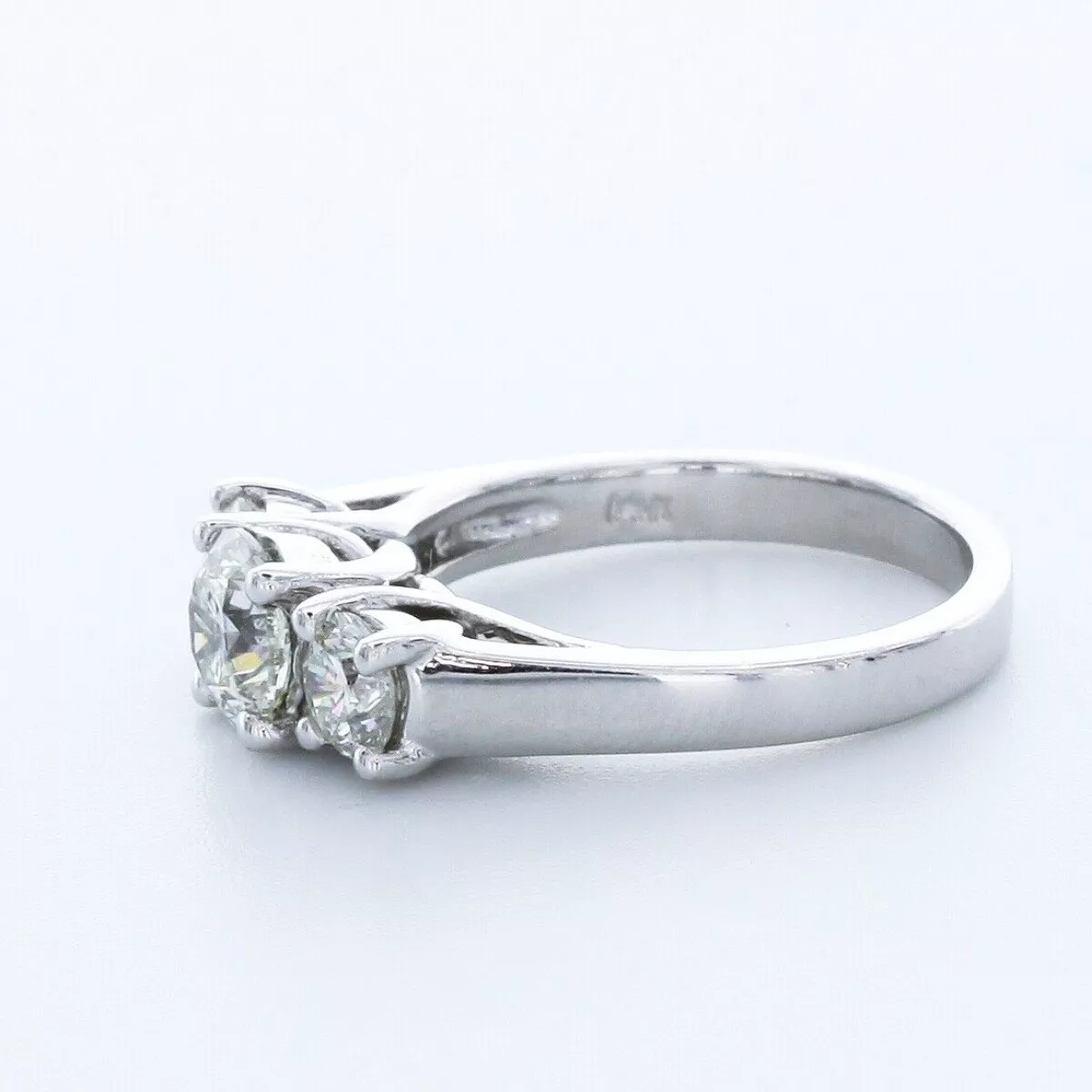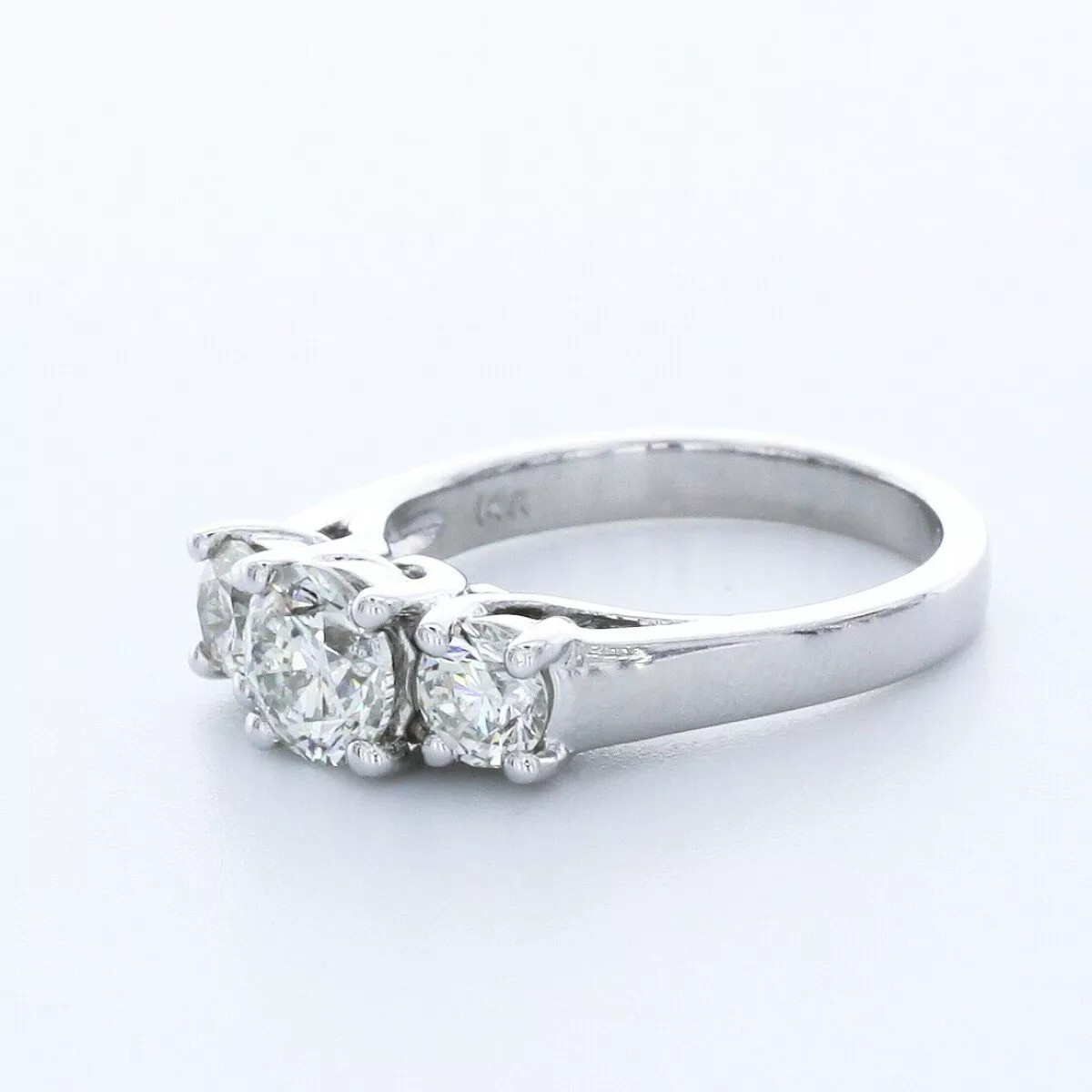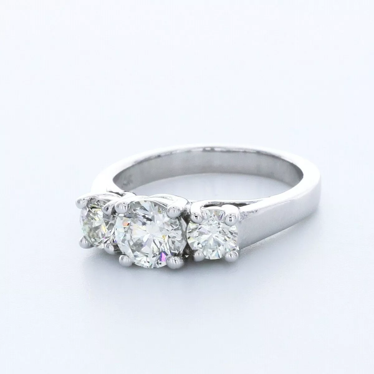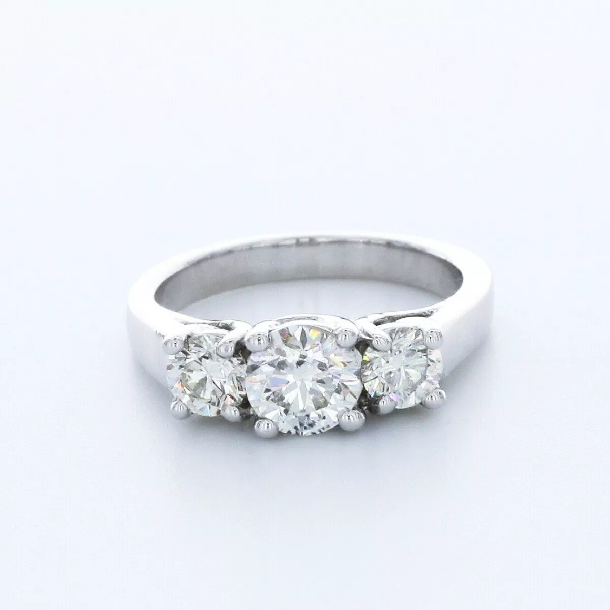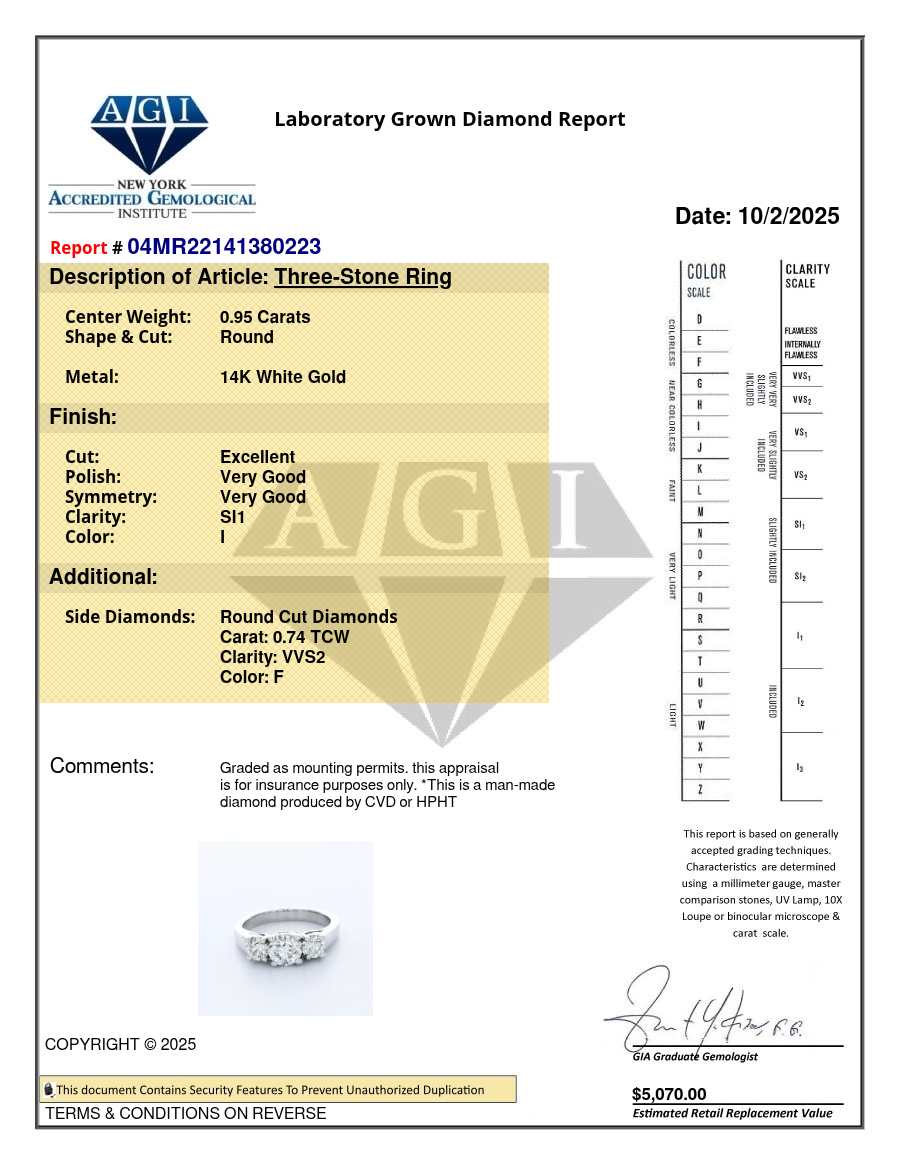 Solid 14K White Gold Three Stone Engagement Ring Trellis AGI Cert 1.69 CT Round Lab-Grown Diamond I SI1