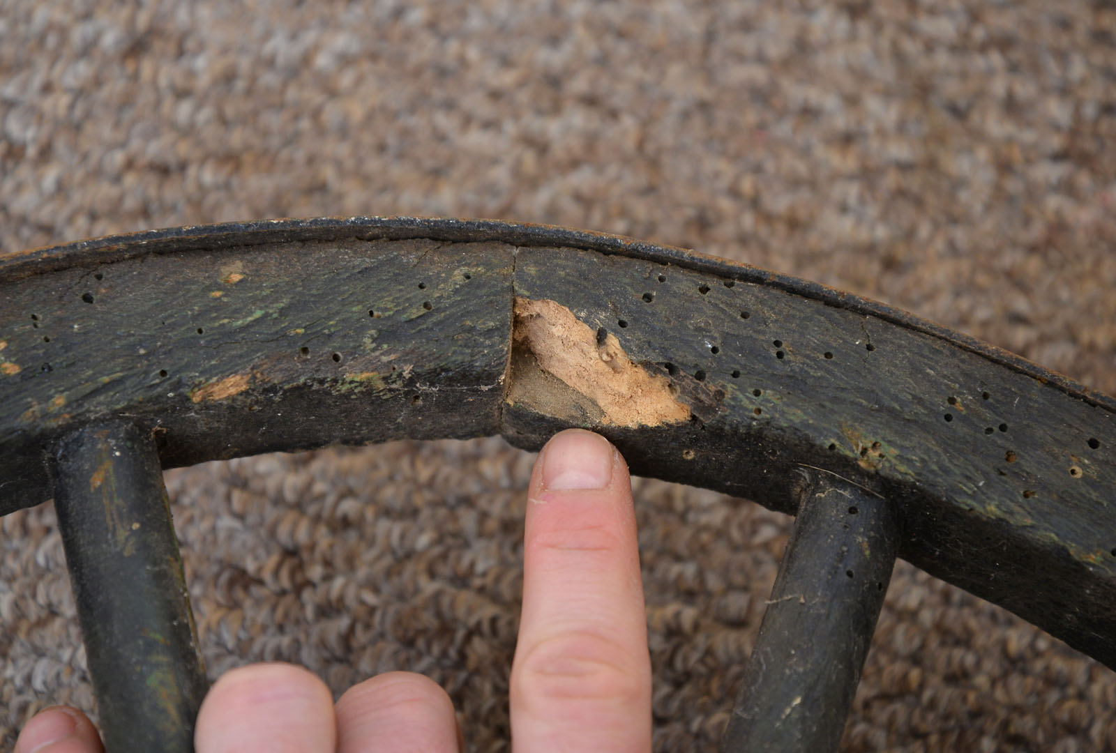PLEASE NOTE: there is a small woodworm damage to outside rim as last picture shows