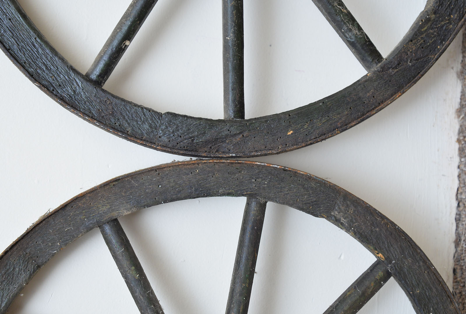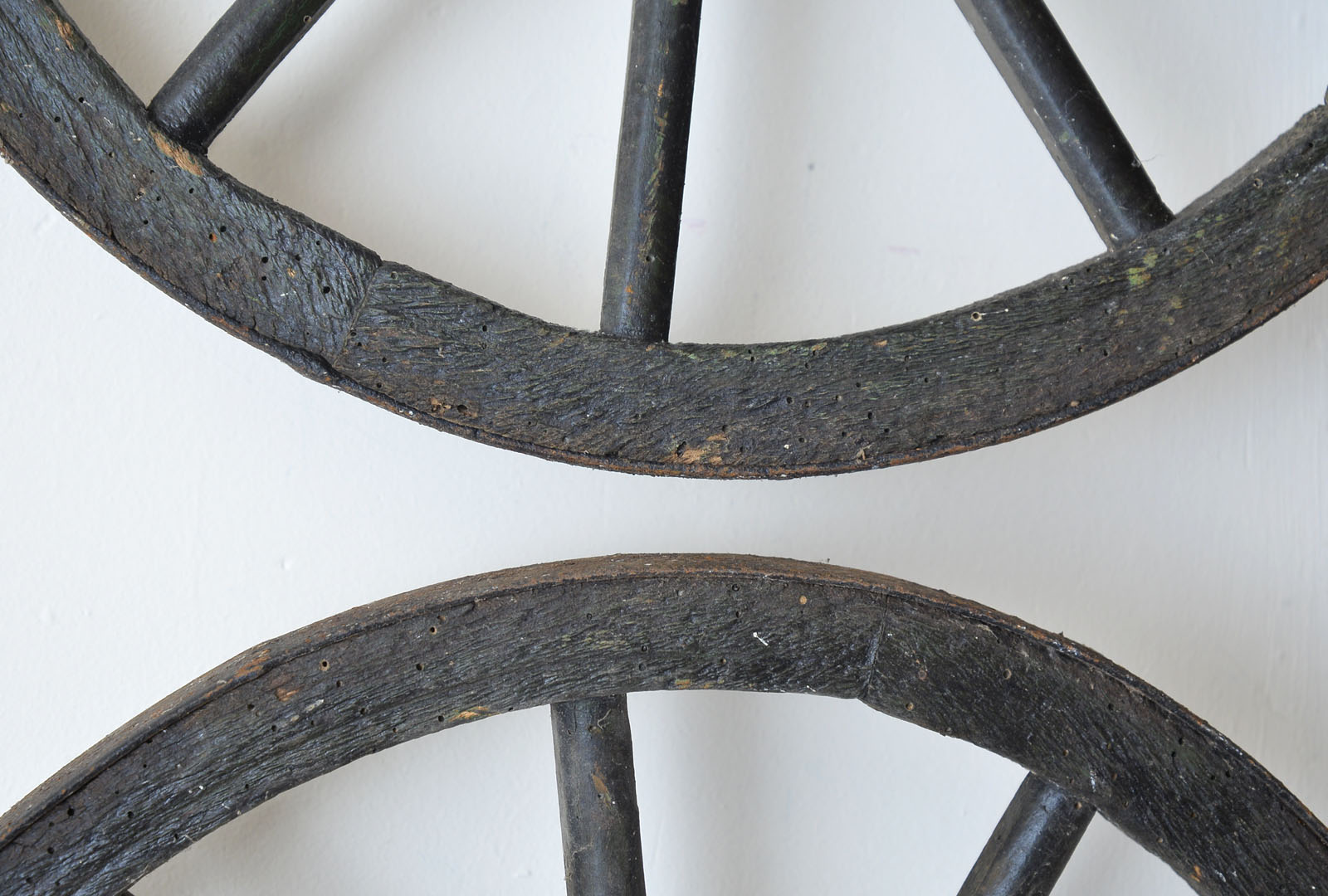 these wheels are in generally good solid condition with some age related imperfections incl. some historic woodworm holes